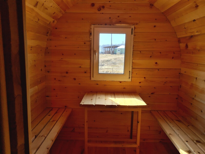 - Баня «Викинг» в форме буханки хлеба на 5–6 человек с видом на Ильинский пруд. Стоимость — 1200–1500 ₽/час.