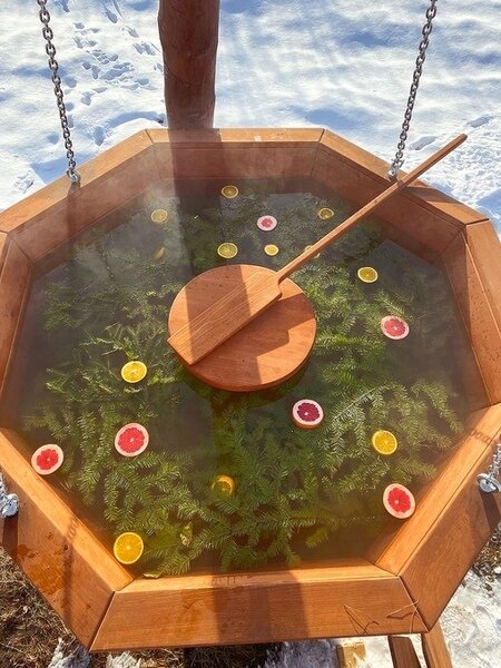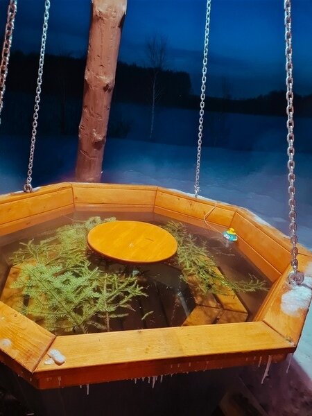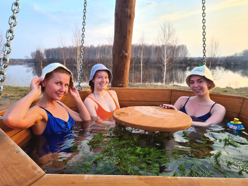 Банный чан с теплой водой, с прекрасным видом на реку Кан. Стоимость — 1300–1600 ₽/час.