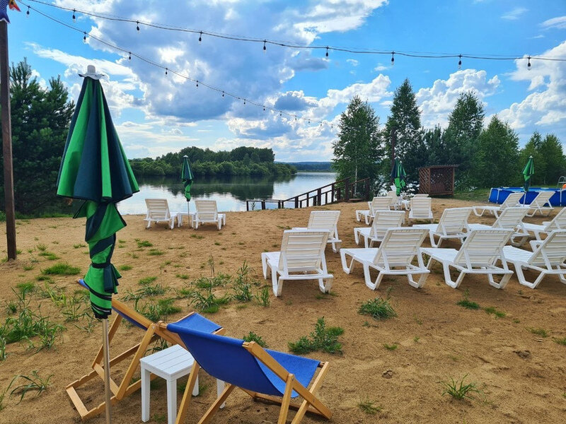 Песчаный пляж с лежаками и зонтиками. Для детей теплый бассейн, горка. Теплый душ, раздевалки. По субботам качественная музыка и авторские коктейли.