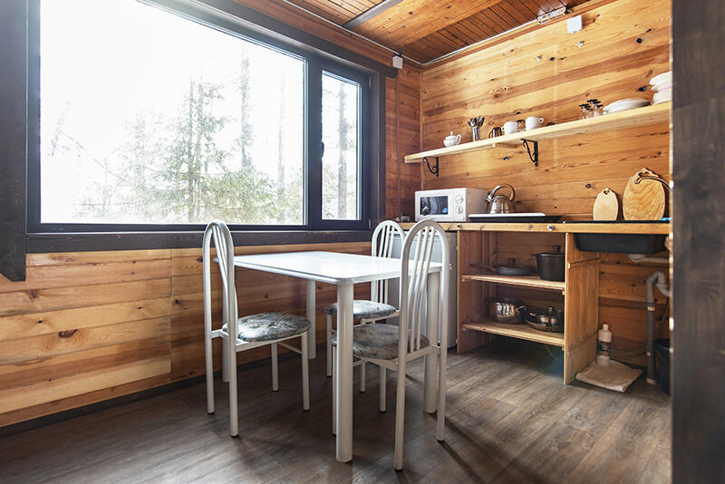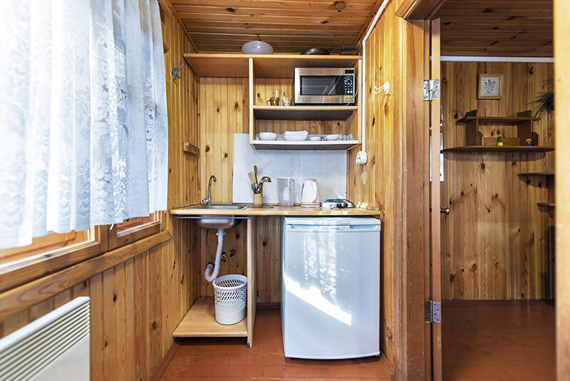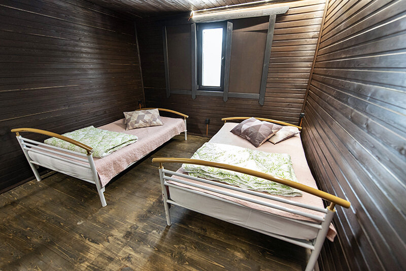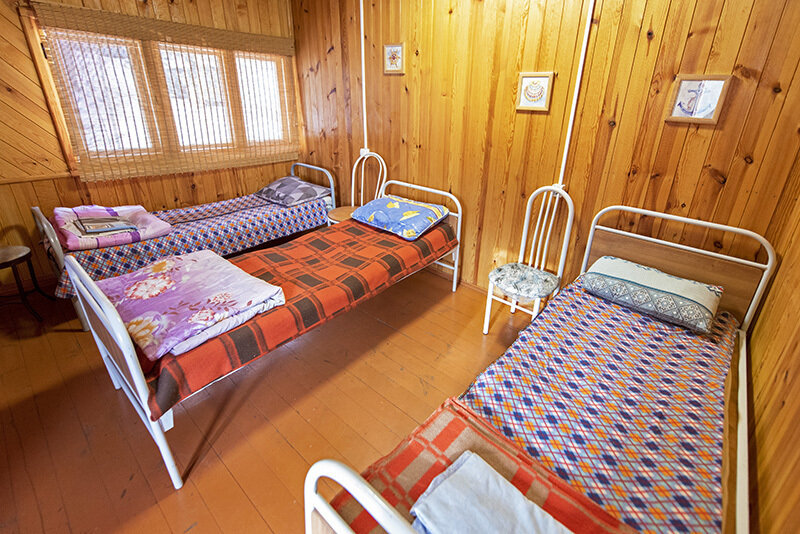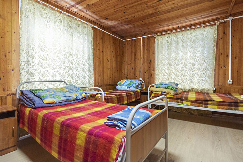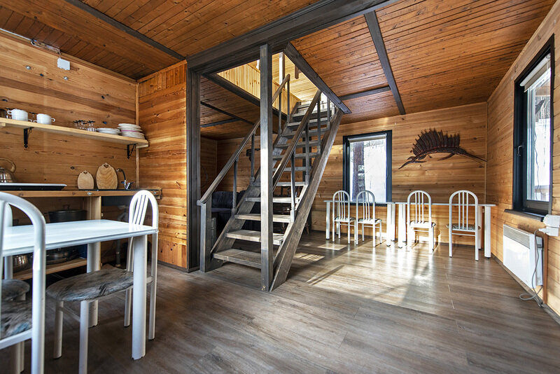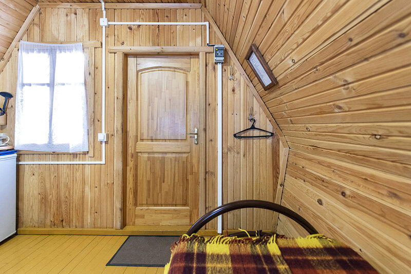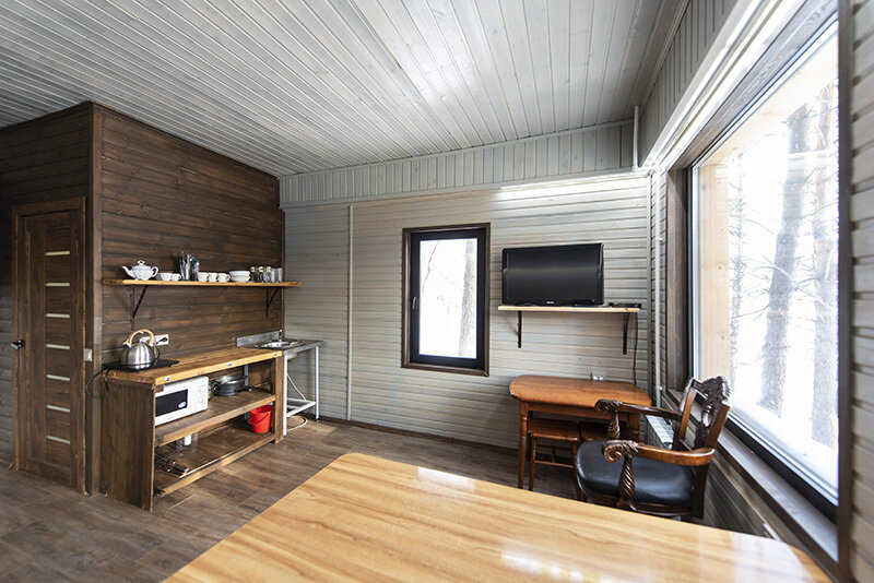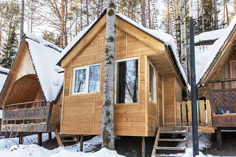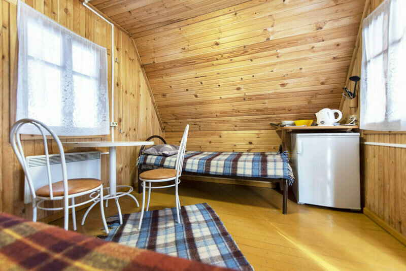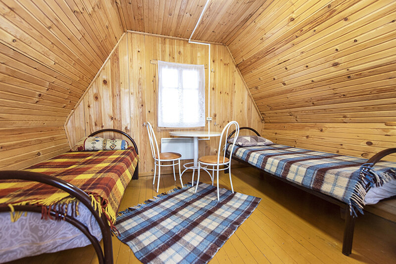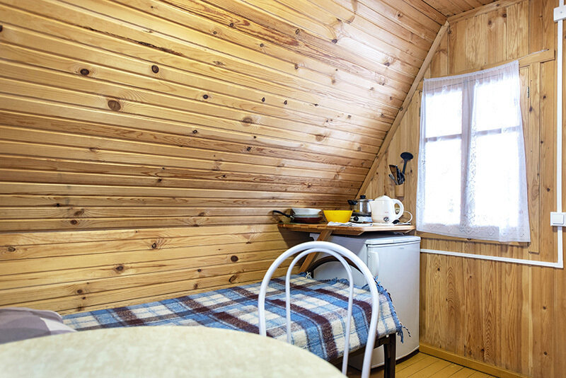 Домики для проживания расположены среди деревьев, поэтому в них не жарко и не холодно, а очень комфортно. В каждом домике есть удобные кровати, чистое постельное белье, полотенца, посуда, холодильники, электрочайники и другие приятные мелочи, наличие которых создает ощущение домашнего уюта. В домиках повышенной комфортности имеется спутниковое телевидение и теплые полы, в летнее время есть возможность пользоваться душевыми кабинами и санузлом. Здесь все создано для того, чтобы Вы, даже посетив базу на сутки-другие, чувствовали себя комфортно.