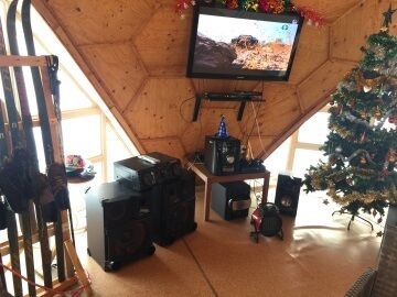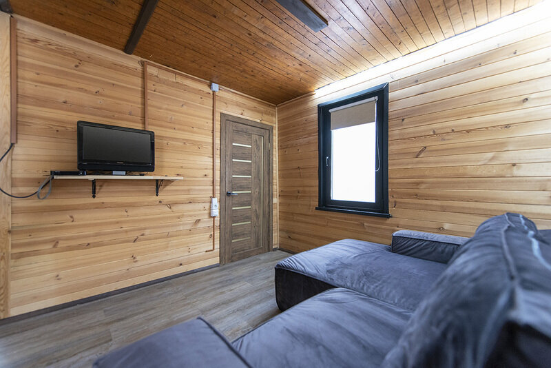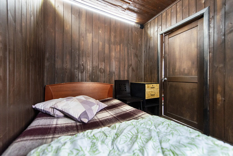 4-х и 5-ти местные номера. В общем зале: спутниковое ТВ, кухня, душевая кабина, умывальник, туалет.