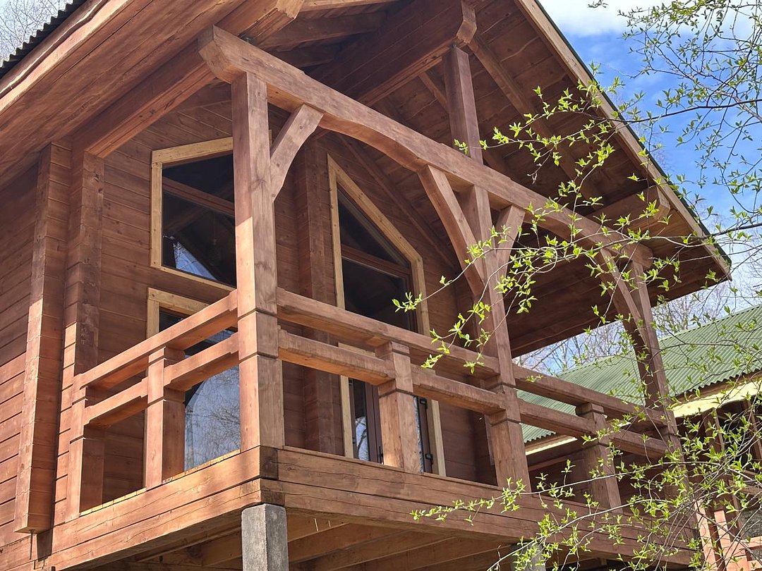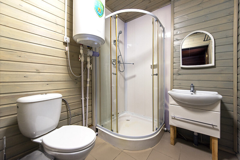 Первый этаж: 4 спальни по две односпальные кровати, общая кухня. Санузел с душевой в цоколе.