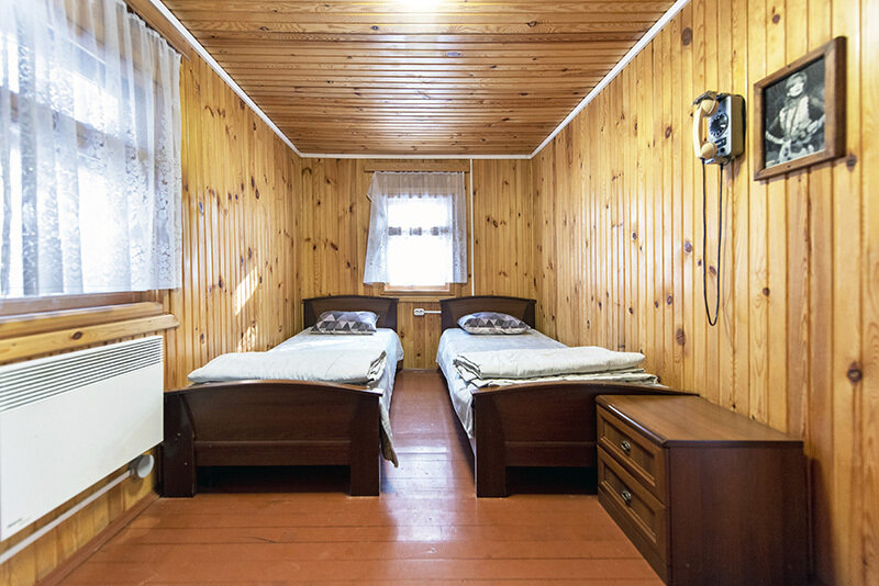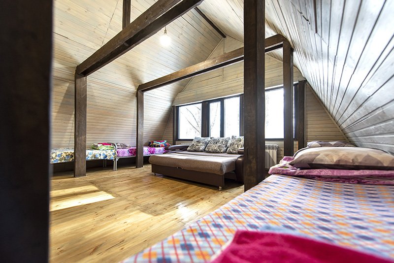 На втором этаже одно и двуспальные кровати на 6 человек.