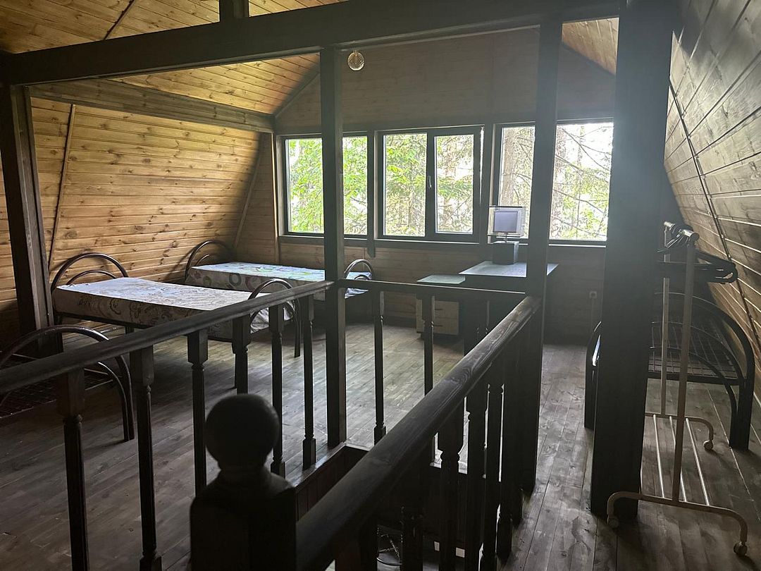 Первый этаж: 4 спальни по две односпальные кровати, общая кухня. Санузел с душевой в цоколе.
