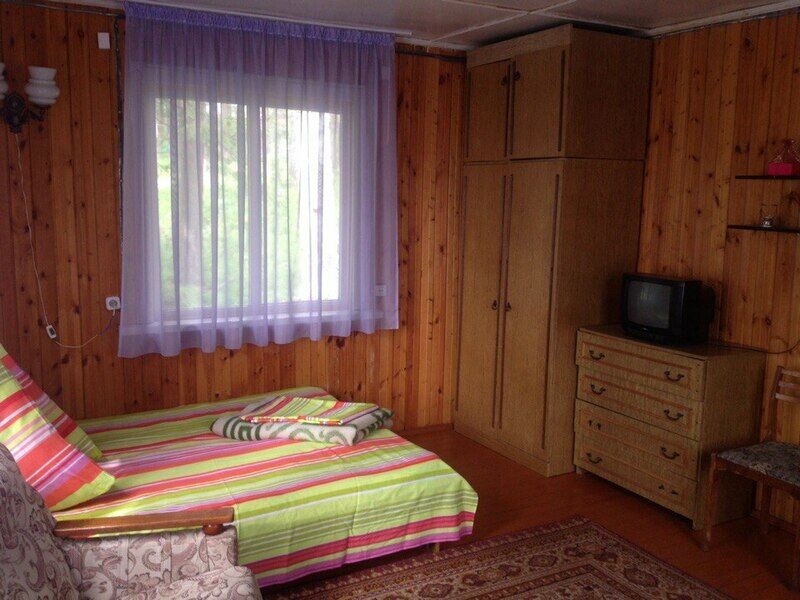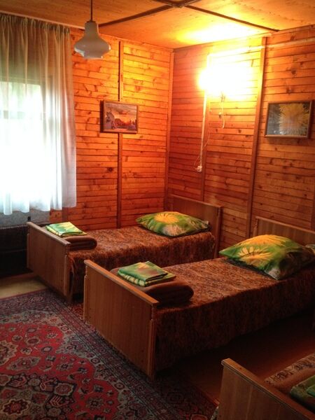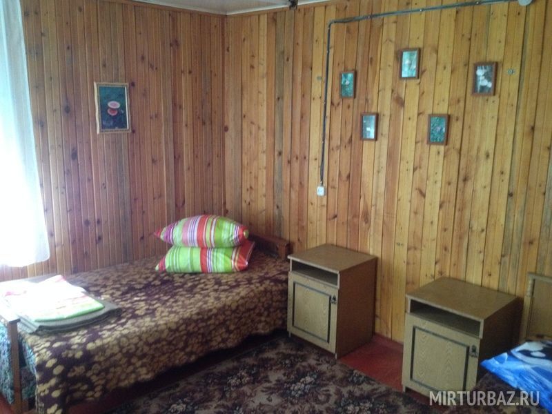 2 этаж: 2 спальни по 3 кровати в каждой; большой стол, тумбочки, шкаф, зеркало, телевизор.