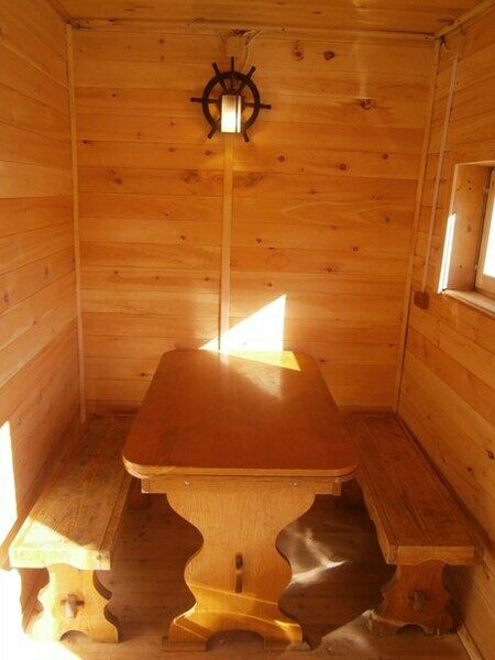 В каждом доме электрические батареи. Свет круглосуточно. В ночное время суток территория базы освещается по всему периметру. Перед каждым домом мангальная площадка: большой стол с зонтом и мангал.