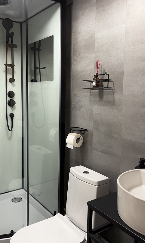 Также в доме имеется санузел с душевой кабиной, где предоставляются зубные наборы, шампунь и гель для душа, а также фен и комплект полотенец для комфорта. Гостям доступен Wi-Fi и возможность онлайн-развлечений, чтобы каждое мгновение оставило незабываемые впечатления.