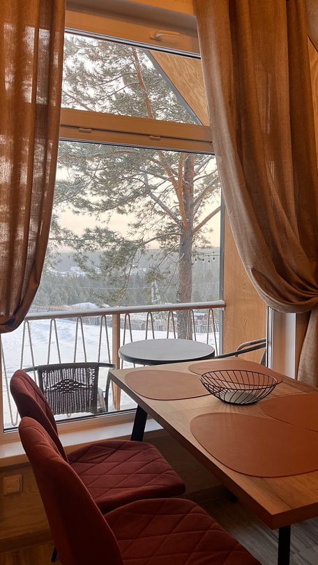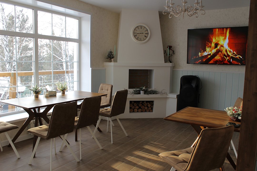 С панорамными окнами, открывающими живописные виды на окружающую природу, гости могут наслаждаться атмосферой расслабления. В течение дня гости собираются здесь, чтобы испытать азарт настольных игр или погрузиться в просмотр любимых фильмов. В этой дружеской обстановке каждая встреча становится незабываемым событием, полным смеха и ярких воспоминаний.