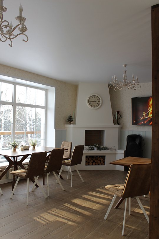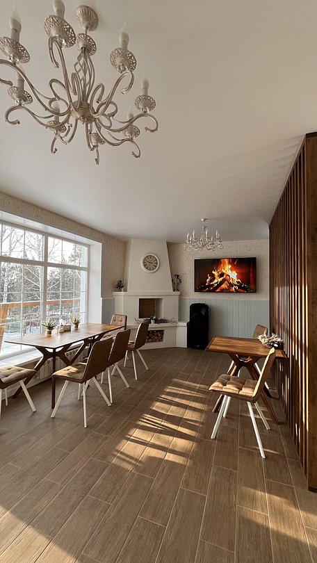 Зона отдыха в загородном клубе — это идеальный уголок для разгрузки и воплощения любимых увлечений. Здесь можно организовать всевозможные мероприятия: от банкетов и торжеств до мастер-классов и камерных встреч. Утром пространство наполняется ароматом свежесваренного кофе, а уютный камин дополняет идеальную атмосферу.