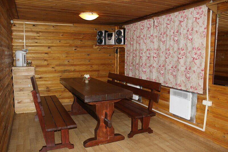 Банкетный домик рассчитан на пребывание компании до 25 человек. Домик утеплен, имеется холодильник, СВЧ-печь, электрический чайник и микроволновка.