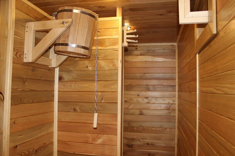 Деревянные стенки и полки, деревянные ведра и ушата. Русские бани на дровах топятся исключительно березовыми хорошо просушенными дровами. Этот незабываемый аромат бани на дровах так удачно подчеркивает комфортную обстановку, домотканые половички-кружочки, атмосферу веселья.