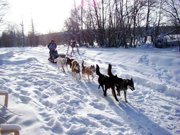 Катание осуществляется вблизи территории Базы круглогодично в световой день. Познакомитесь с удивительными собаками породы Сибирской хаски, которые прокатят Вас с ветерком на санях, где Вы научитесь управлять нартами. Само катание по времени занимает до 30 минут (катание поочередно по одному участнику, расстояние 1 -1,5 км на одного человека), далее Вам предоставляется уютный дом, где можно будет погреться за чашечкой чая. И фотографирование с хаски.