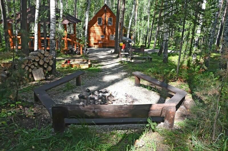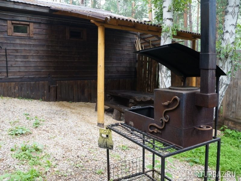 Банька, очень «ядрёная» для ценителей, отдельная огороженная территория, мангал, бревенчатый стол и лавочки без навеса.