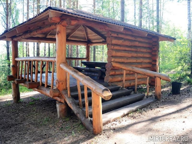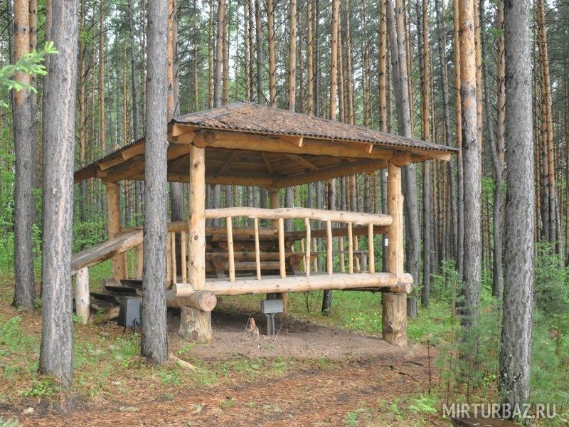Тёплая беседка находится в верхнем и уединённом месте соснового бора, примерно в 120-ти метрах от парковки: