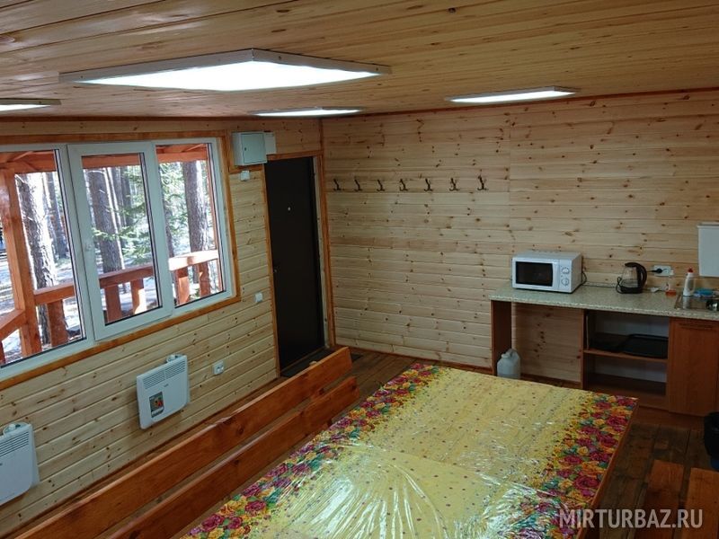 Гостям для проживания предлагается уютный двухэтажный гостевой дом из цельного бревна, с прекрасным видом, расположенный в живописном месте соснового и смешанного леса.