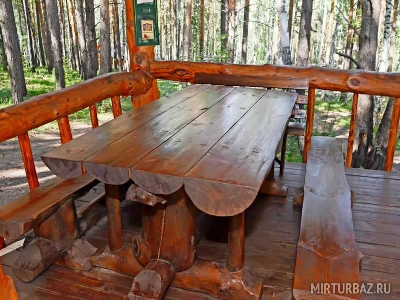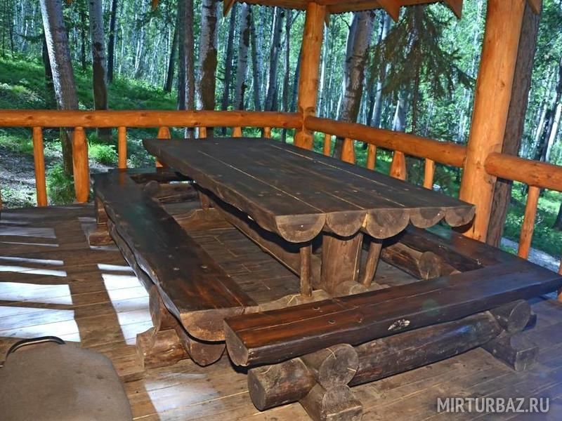 Большие добротные беседки для пикника из цельного бревна с бревенчатой мебелью и электричеством на 8-20 чел. расположены на приличном расстоянии друг от друга.