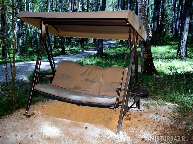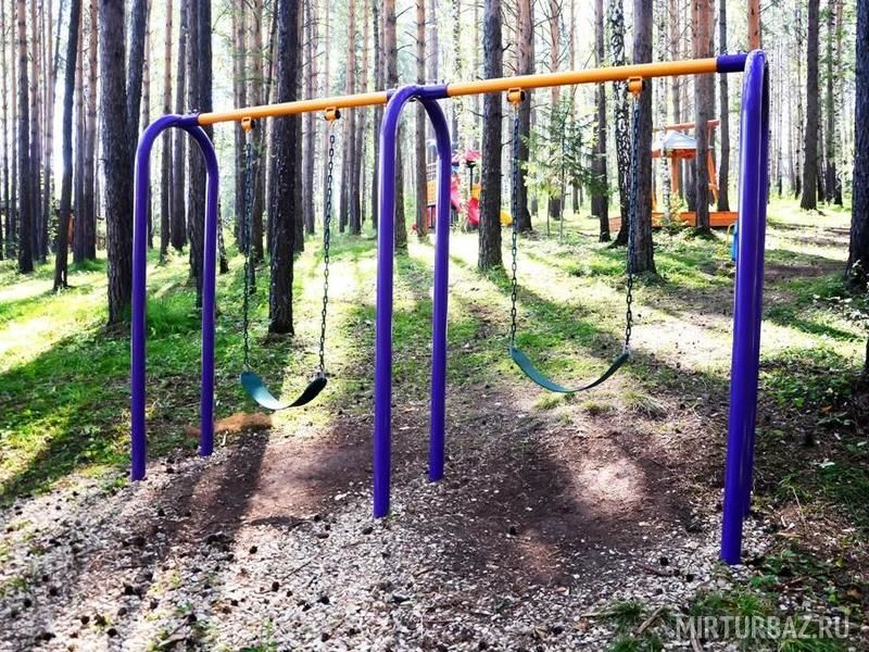 Детская площадка находится внутри беседочной зоны и позволяет видеть детей из любой беседки.