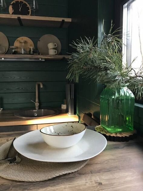 - кухонная зона: холодильник, микроволновая печь, тостер, варочная плита, чайник, красивая посуда и вся остальная необходимая утварь;