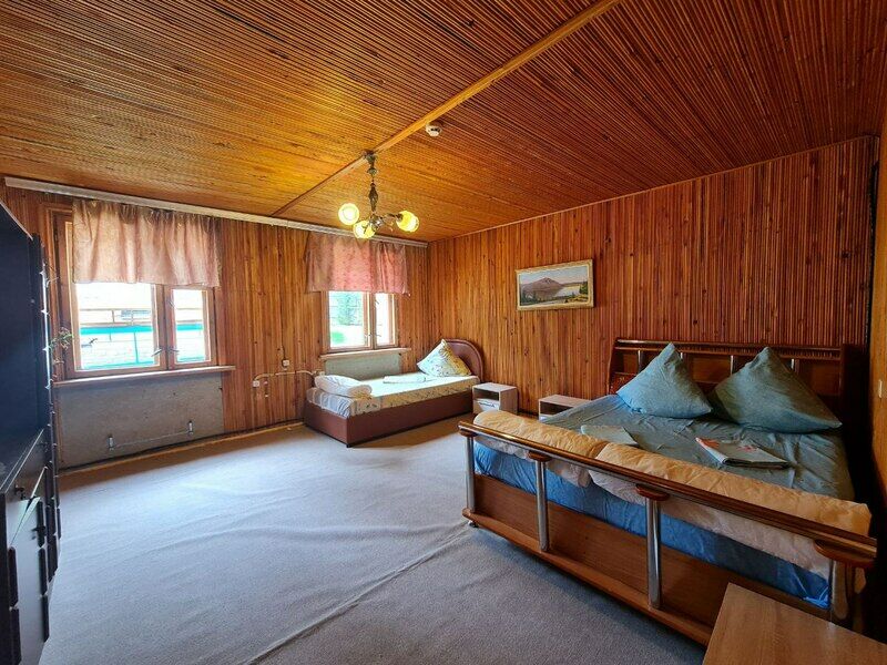 Кровати, тумбочки, постельное белье, обогреватели. 3 спальных места. Без удобств.