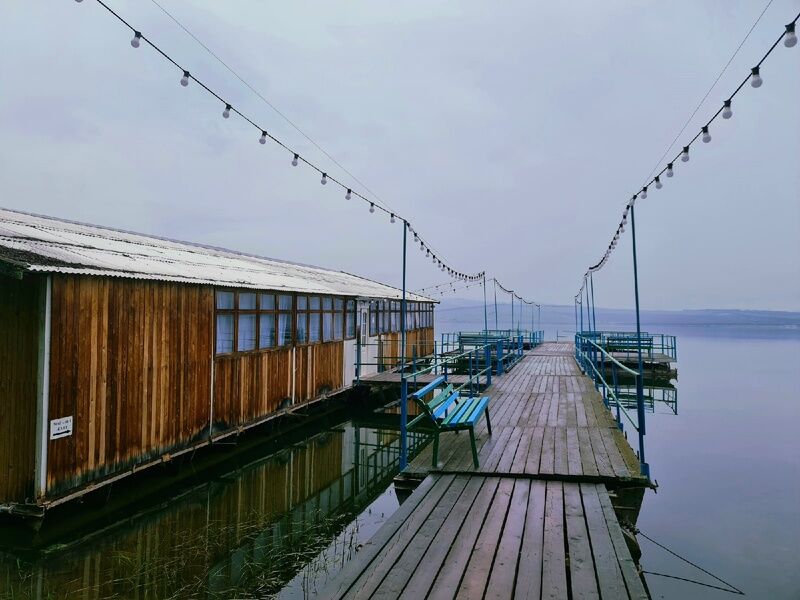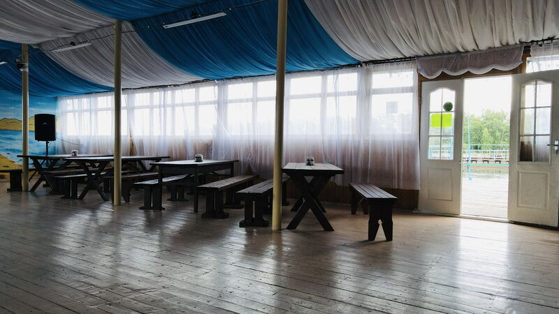 Кафе вмещает до 100 человек, расположено на воде, с выходом на пирс.Кафе «Поплавок»