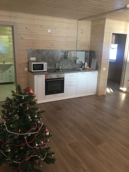 На территории базы отдыха Красноярска «Енисейский бриз» расположены три одноэтажных деревянных дома на три комнаты. Построены в 2017 году. Новая мебель, современная бытовая и сантехника.