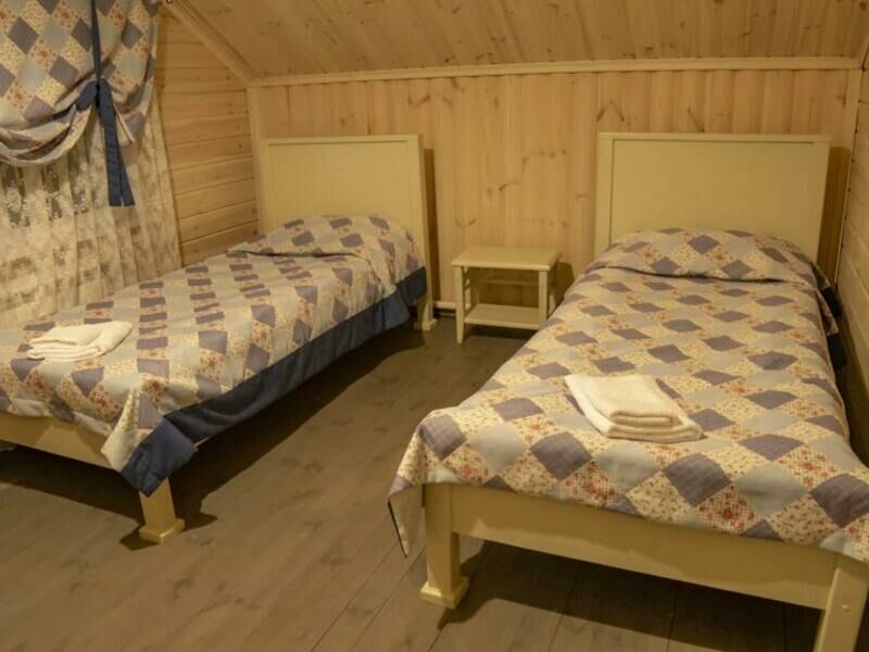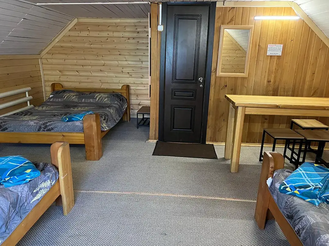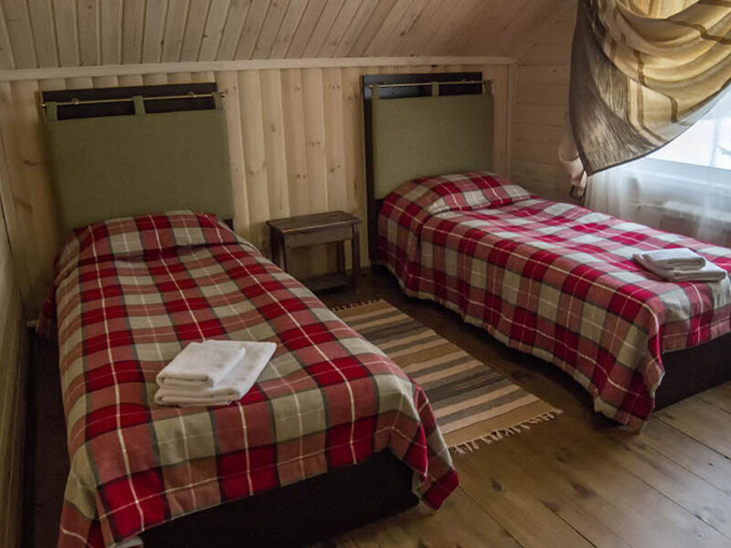 Двухэтажный деревянный корпус рассчитан на проживание двадцати двух человек. Забронировать можно как весь корпус, так и отдельные номера. Корпус оснащен центральным отоплением.