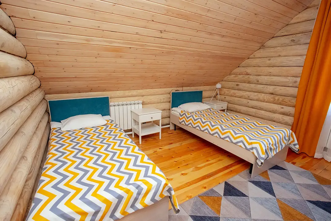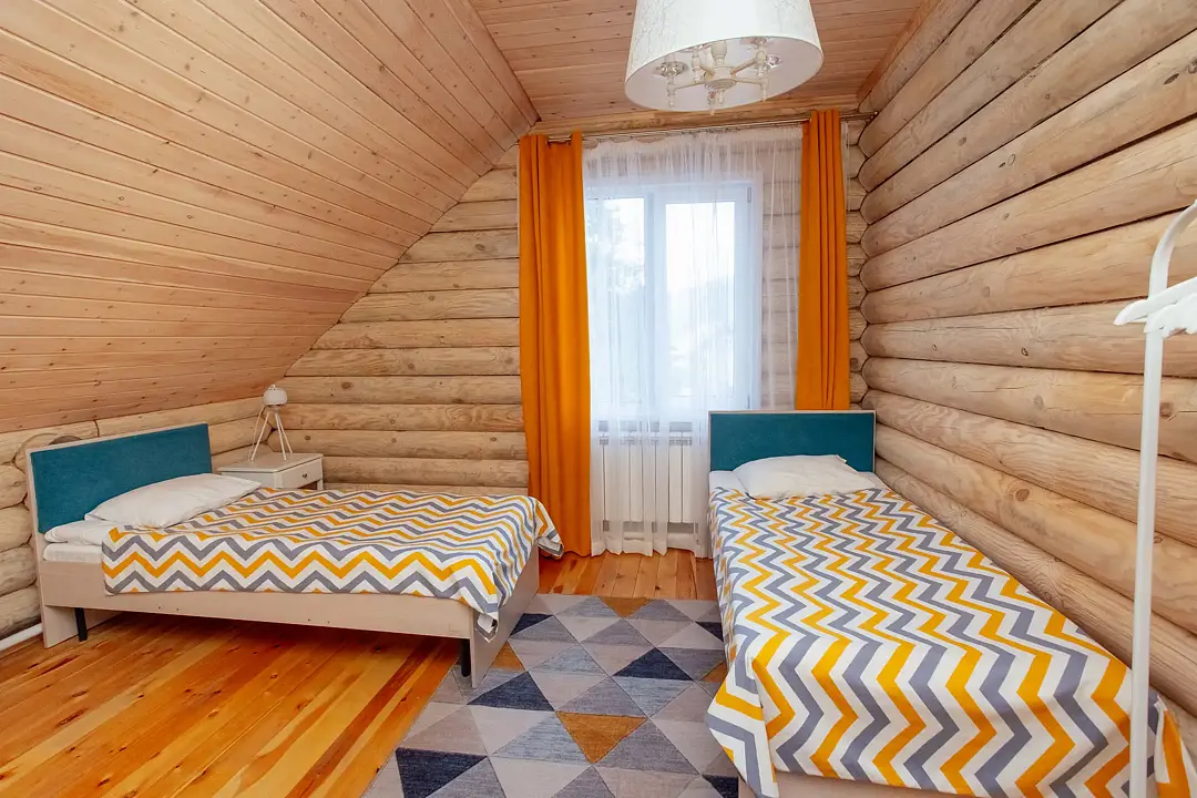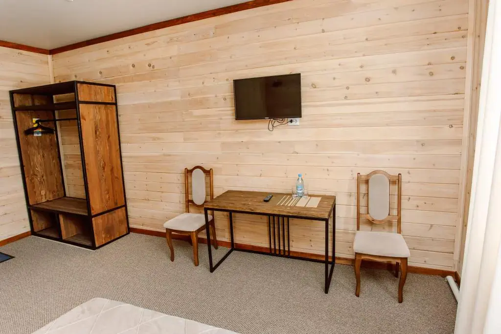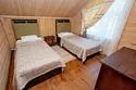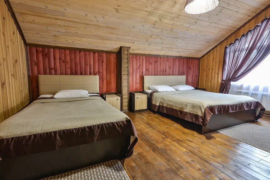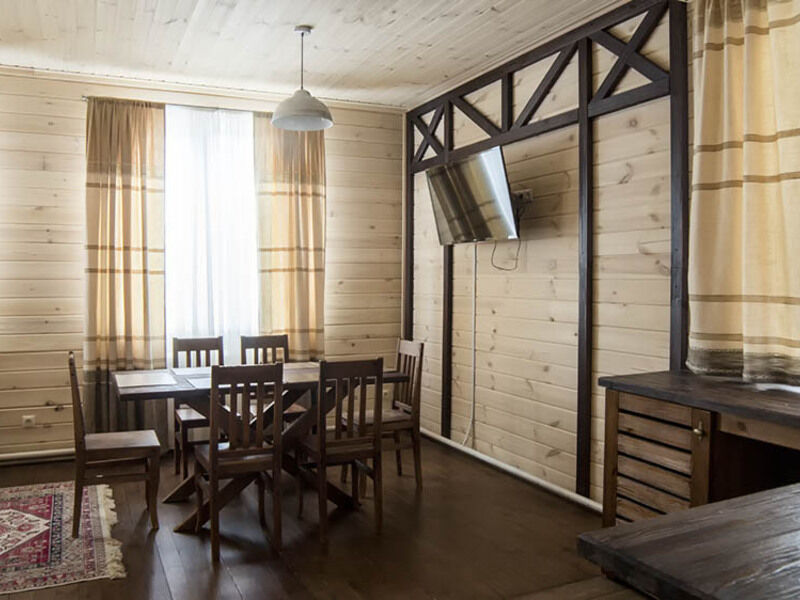 Описание корпуса: двухэтажный деревянный корпус рассчитан на проживание двадцати двух человек. Забронировать можно как весь корпус, так и отдельные номера. Корпус оснащен центральным отоплением.