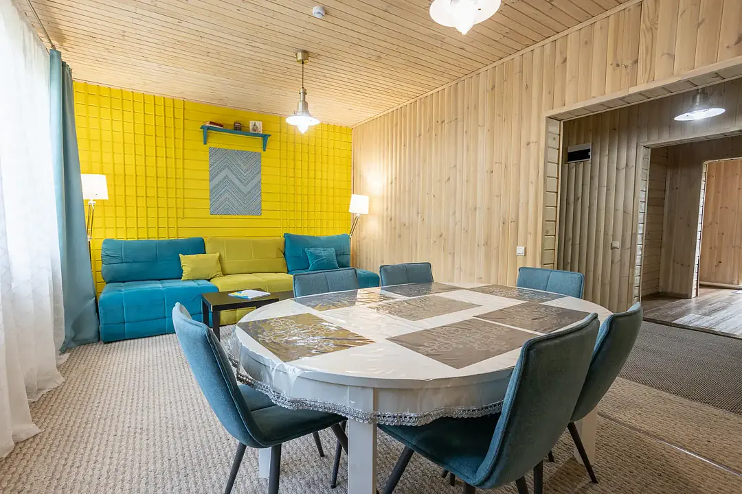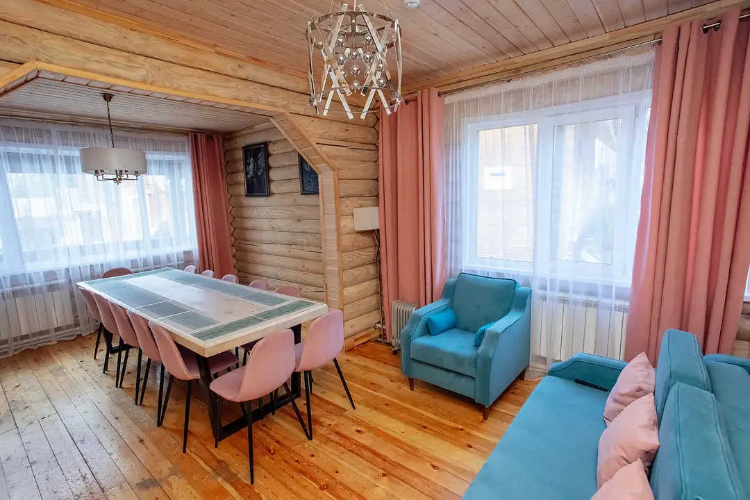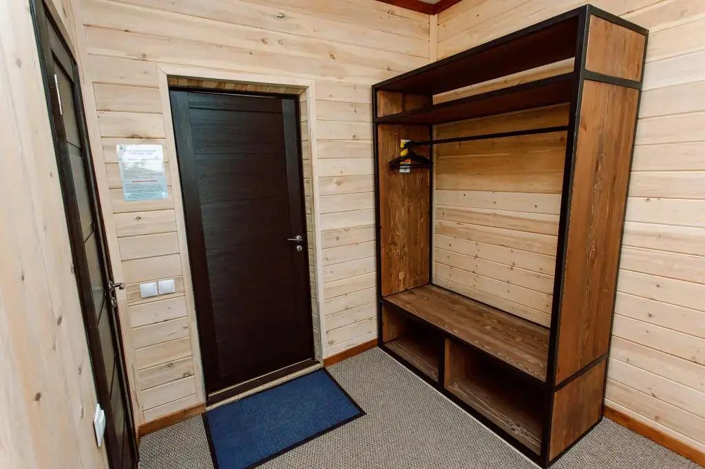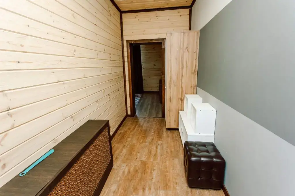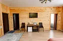 Описание корпуса: двухэтажный деревянный корпус рассчитан на проживание двадцати двух человек. Забронировать можно как весь корпус, так и отдельные номера. Корпус оснащен центральным отоплением.