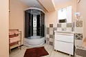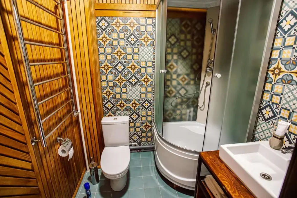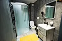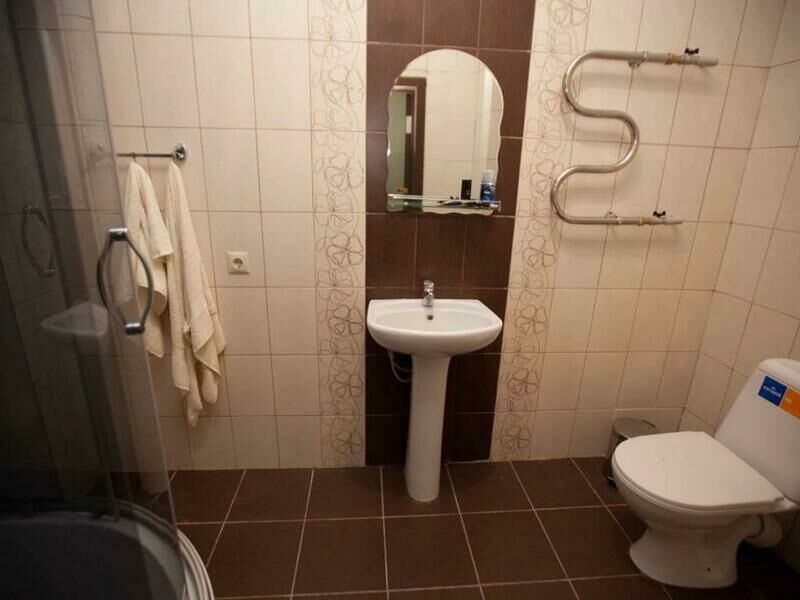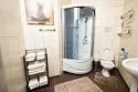 В ванной комнате — душевая кабина, санузел, комплект полотенец, гостиничная парфюмерия (мыло, шампунь, паста, зубная щетка, гель для душа).
