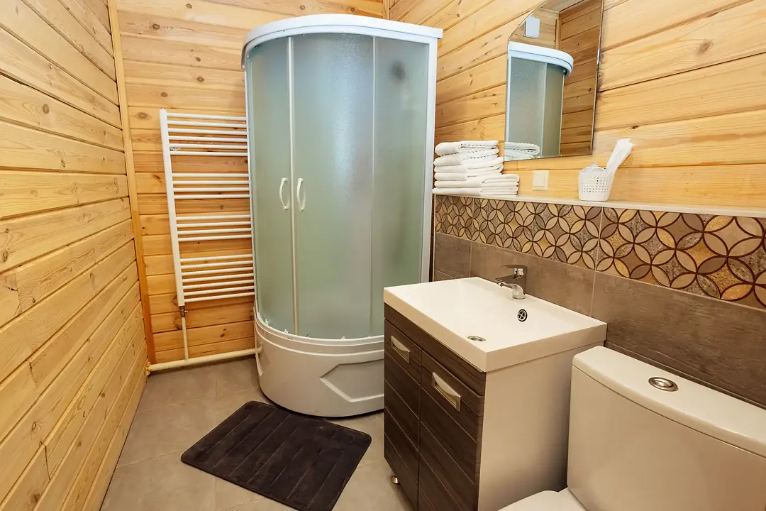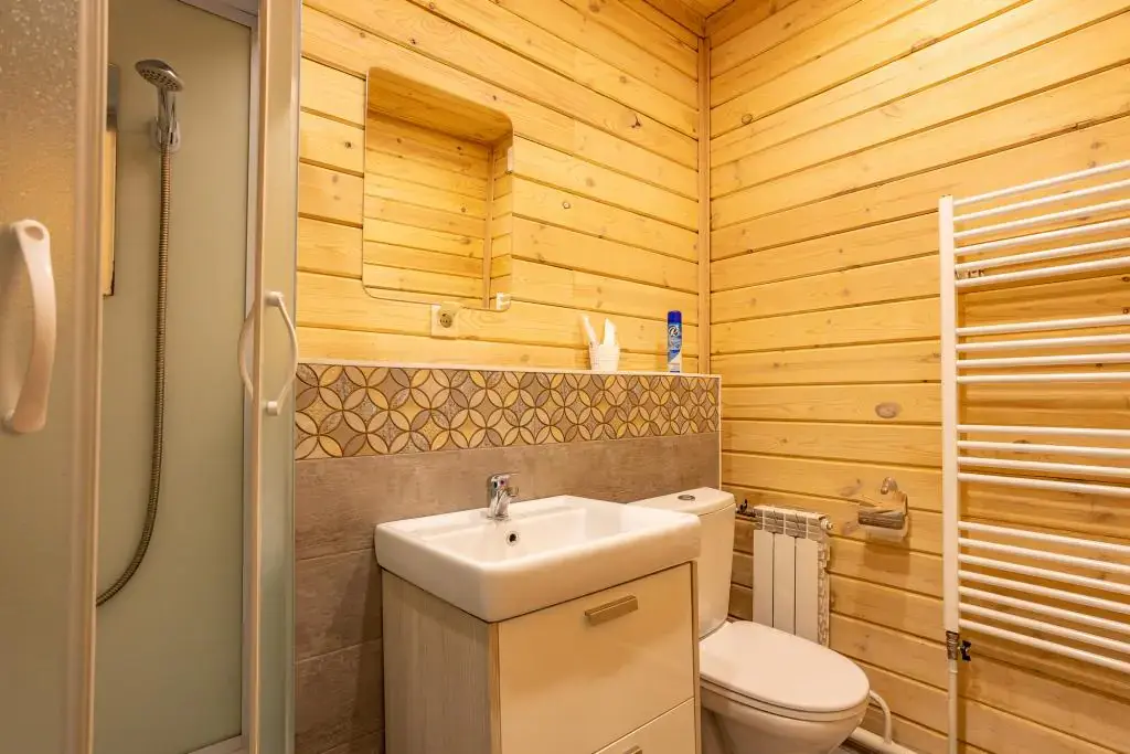 Корпус оснащен центральным отоплением и двумя санузлами (душ, умывальник, туалет, сушилка).