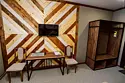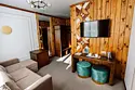 Двухместные номера в гостинице «Backcountry» расположены на втором этаже отеля. Оснащены двухспальной кроватью, прикроватными тумбами, столом, стульями, телевизором, мини-холодильником, чайником, прихожей.