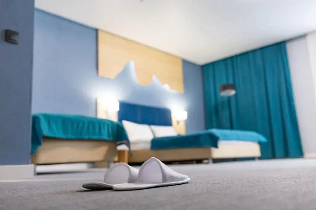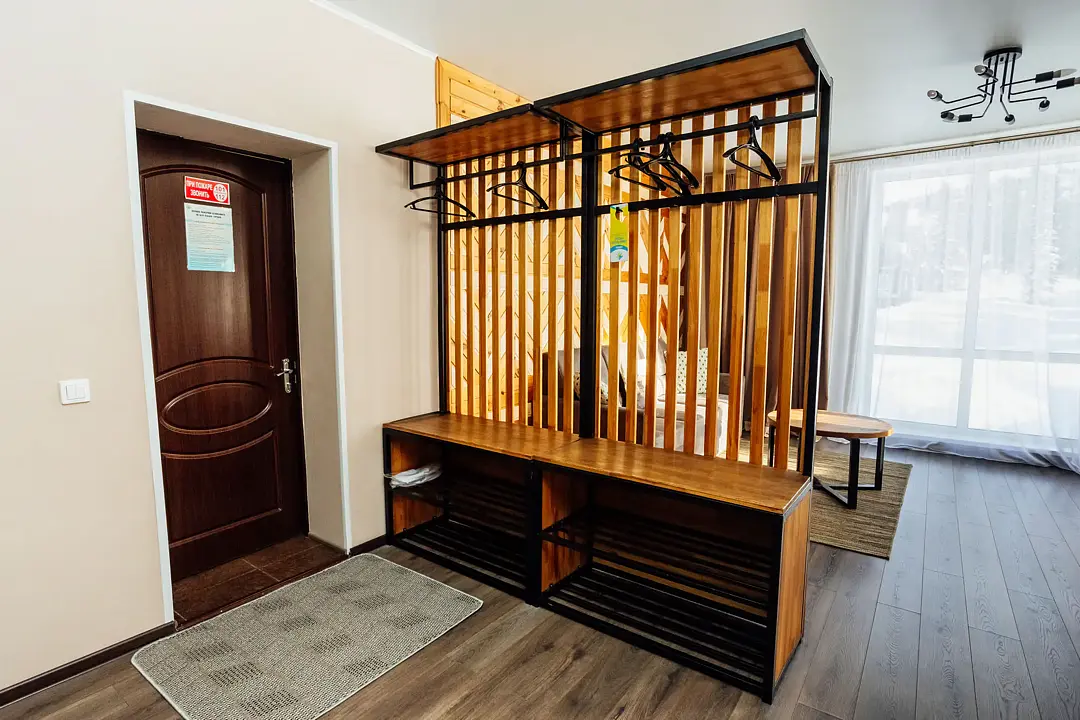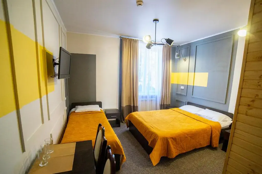 Двухместные номера в гостинице «FreeRide» оснащены двумя спальными местами (одна двуспальная кровать или две односпальные кровати), прикроватными тумбами, столом, стульями, телевизором, прихожей.