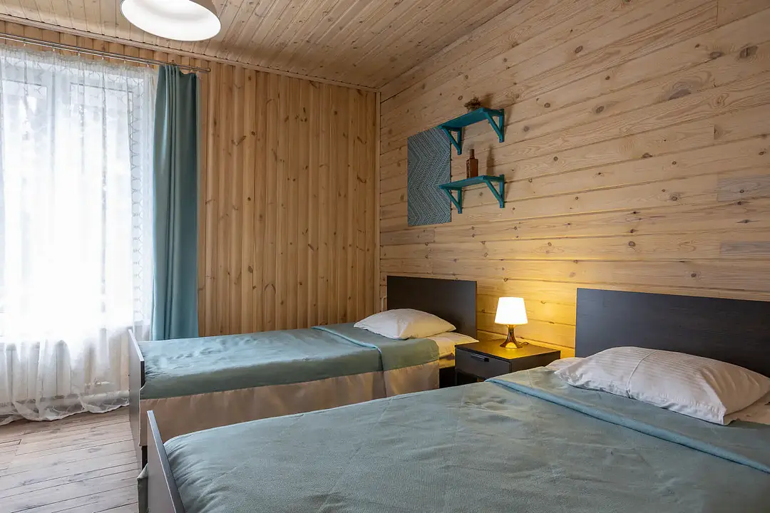 Двухэтажный корпус рассчитан на двадцать человек. Забронировать можно как весь корпус, так и отдельные номера.