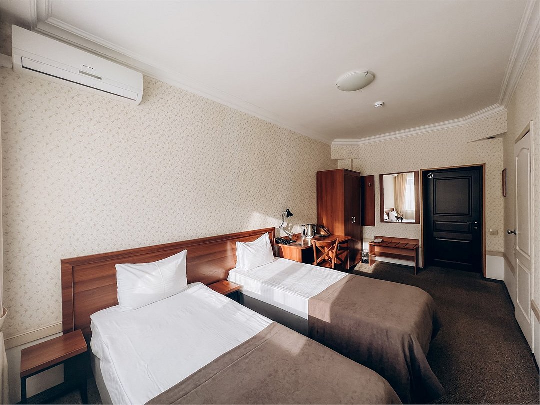 Стандартный номер с возможностью размещения одного или двух человек. Площадь комнаты не менее 14 кв.м. За проживание детей в возрасте до 7-и лет без предоставления отдельного места, оплата не взимается.Услуги и удобства