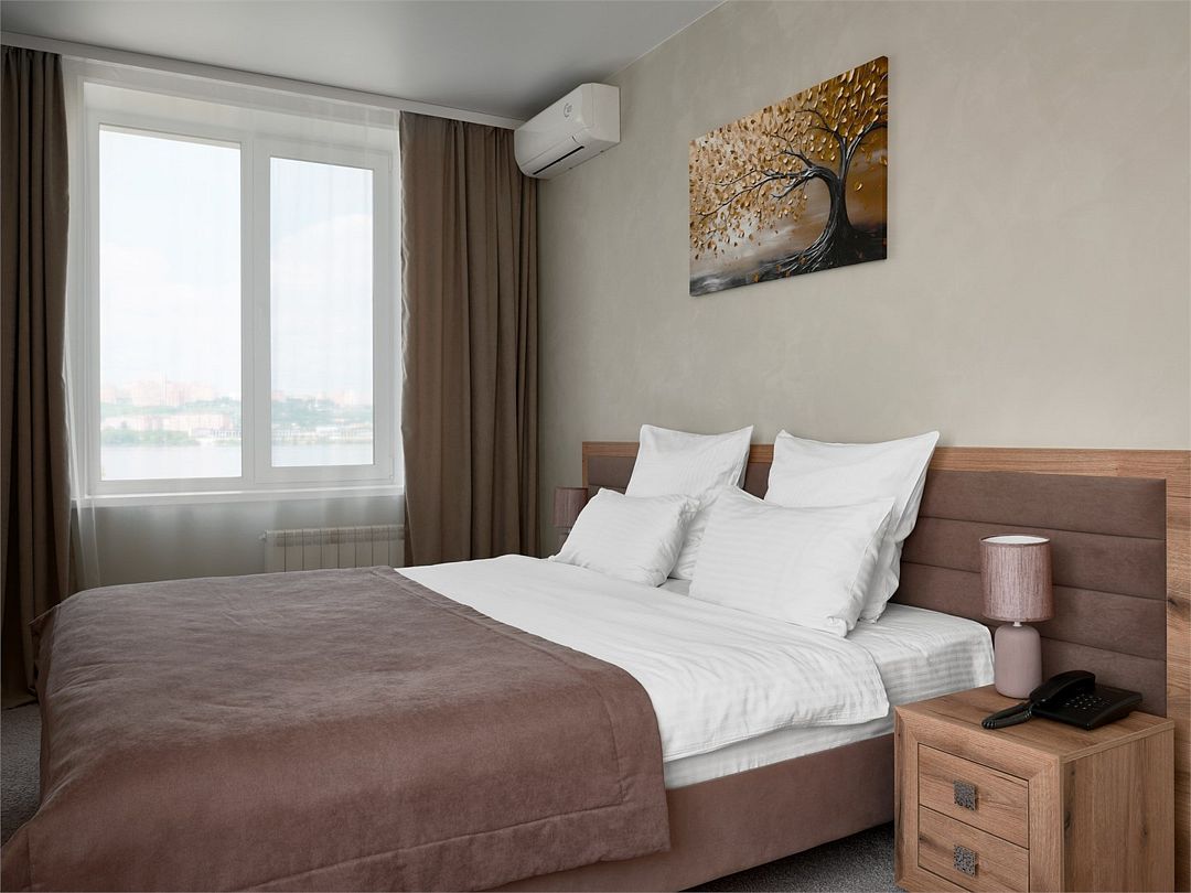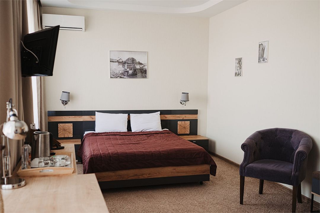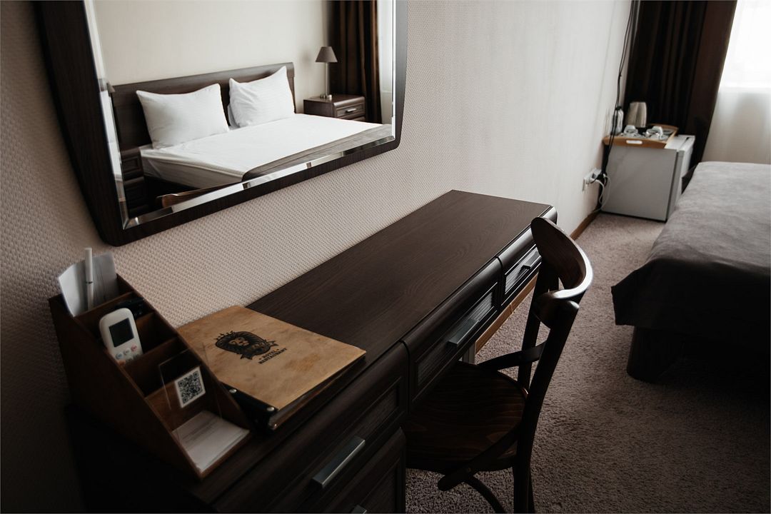 телевизор, кабельное телевидение, Wi-Fi, телефон, кондиционер, фен, ванна или душевая кабина, халаты, банные полотенца, тапочки, косметические средства, двуспальная кровать, кресла, тумбы, шкаф для одежды, журнальный столик, письменный стол, багажная тумба, зеркало, письменные принадлежности, обслуживание номеров, информационная карта, меню, сейф, унитаз, раковина, ковровое покрытие, кресло, стаканы, стул, туалетный столик, мини-холодильник, чайная станция, набор для приготовления чая и кофе, услуги прачечной (платно), вешалки-плечики, бутилированная вода, мини-бар (платно), мыло, затемняющая штора, можно с питомцамиВ гостиничном номере
