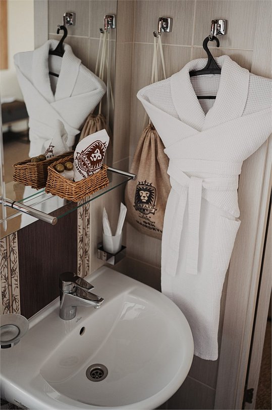 два телевизора, кабельное телевидение, Wi-Fi, телефон, кондиционер, фен, ванна или душевая кабина, халаты, банные полотенца, тапочки, косметические средства, кровать «King size», диван, тумбы, шкаф для одежды, журнальный столик, письменный стол, багажная тумба, зеркало, комод, эксклюзивная мебель, письменные принадлежности, свежая пресса, чайный набор, набор посуды, обслуживание номеров, информационная карта, меню, сейф, унитаз, раковина, ковровое покрытие, кресло, стаканы, стул, туалетный столик, диван-кровать, раскладной диван, мини-холодильник, москитная сетка, чайная станция, набор для приготовления чая и кофе, услуги прачечной (платно), вешалки-плечики, бутилированная вода, мини-бар (платно), шапочка для душа, мыло, затемняющая штора, можно с питомцамиВ номере