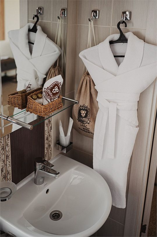 два телевизора, кабельное телевидение, Wi-Fi, телефон, кондиционер, фен, ванна или душевая кабина, халаты, банные полотенца, тапочки, косметические средства, кровать «King size», диван, тумбы, шкаф для одежды, журнальный столик, письменный стол, багажная тумба, зеркало, комод, эксклюзивная мебель, письменные принадлежности, свежая пресса, чайный набор, набор посуды, обслуживание номеров, информационная карта, меню, сейф, унитаз, раковина, ковровое покрытие, кресло, стаканы, стул, туалетный столик, диван-кровать, раскладной диван, мини-холодильник, москитная сетка, чайная станция, набор для приготовления чая и кофе, услуги прачечной (платно), вешалки-плечики, бутилированная вода, мини-бар (платно), шапочка для душа, мыло, затемняющая штора, можно с питомцамиВ гостиничном номере
