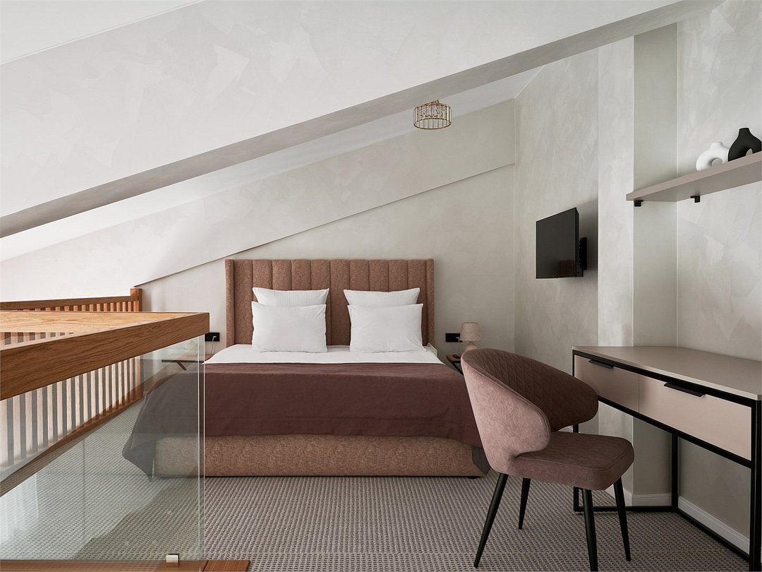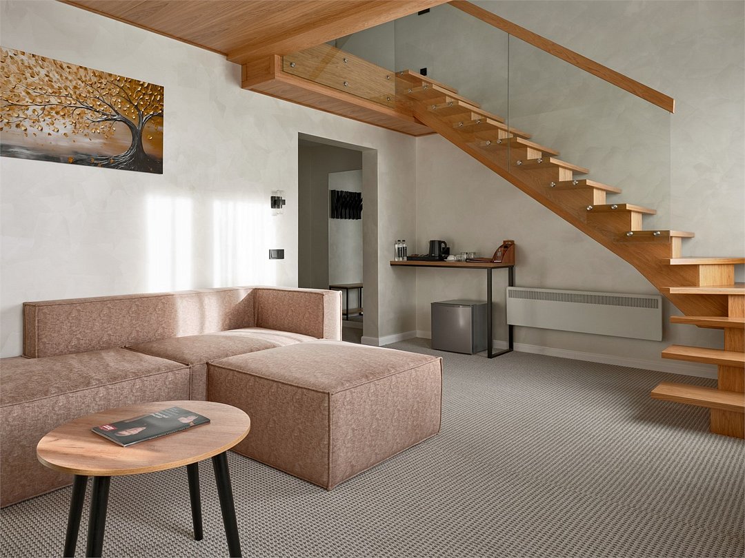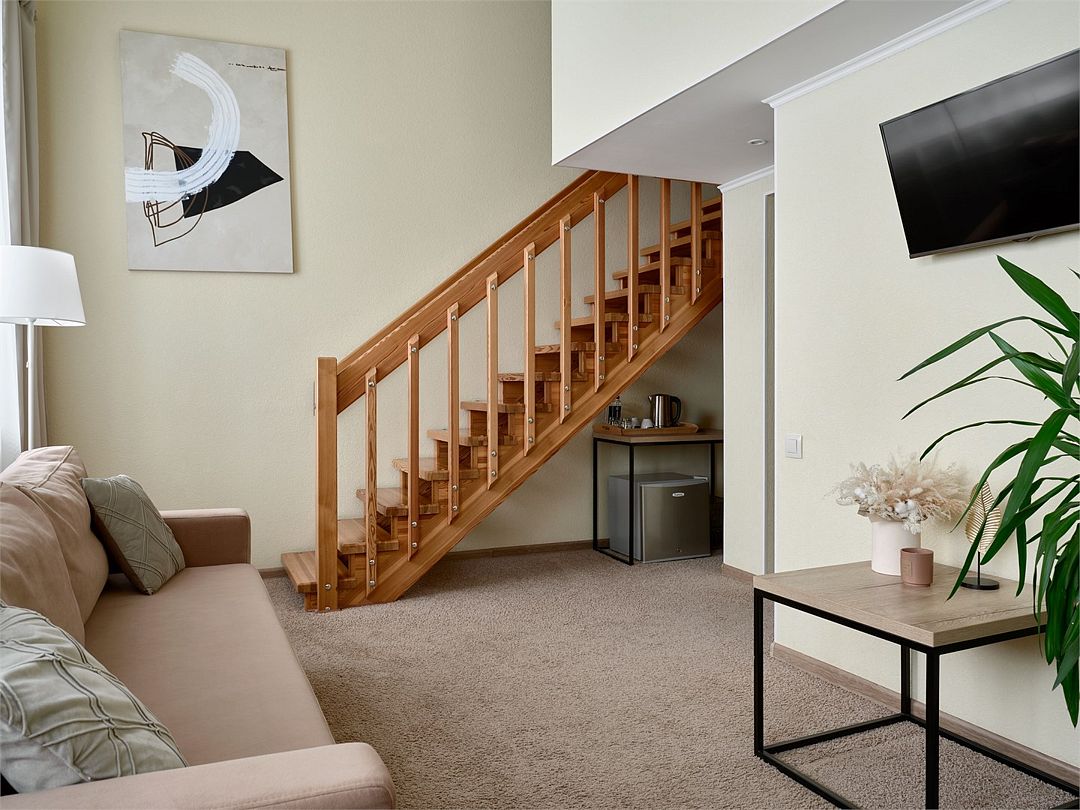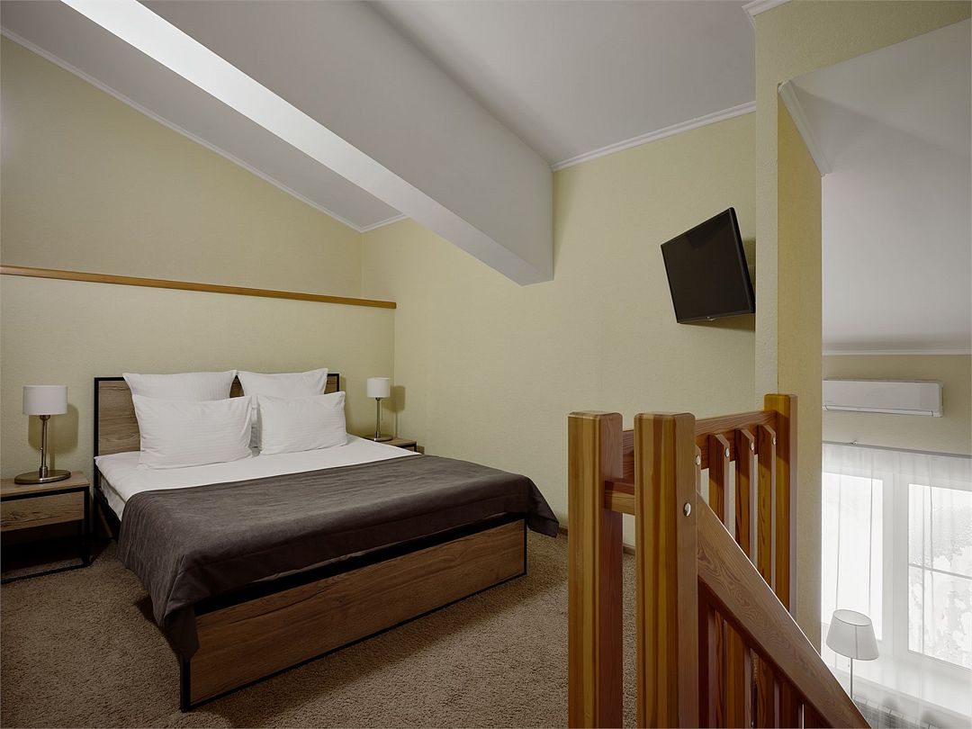 Двухуровневый номер Люкс, с возможностью размещения до четырех человек на дополнительных спальный местах. Площадь комнаты не менее 35 кв.м. За проживание детей в возрасте до 7-и лет без предоставления отдельного места, оплата не взимается.Услуги и удобства