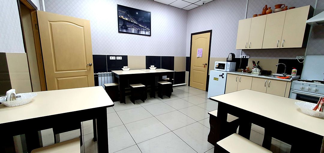Наличие общей кухни позволяет самостоятельно готовить блюда, не тратя лишние деньги на питание в кафе. Также приятно, что в отеле есть сауна с бассейном, что добавляет к общему отдыху. Для гостей с автомобилем имеется парковка.