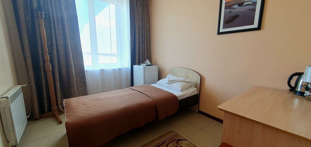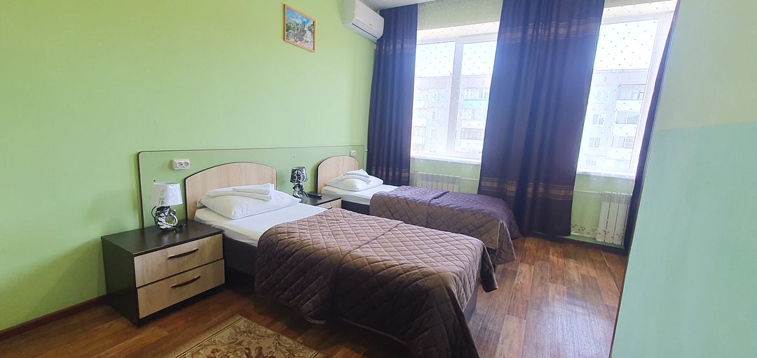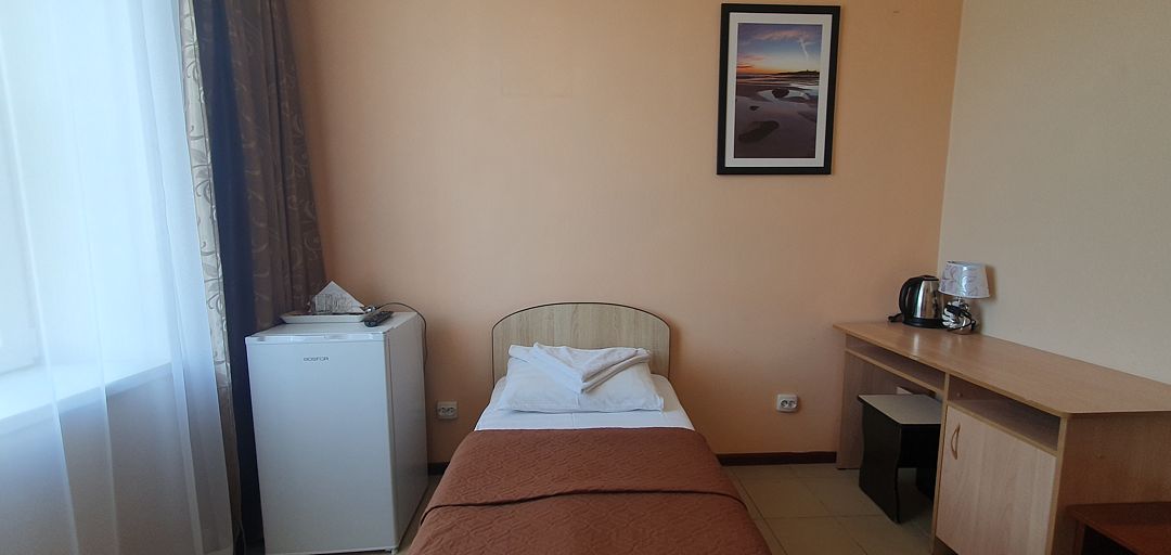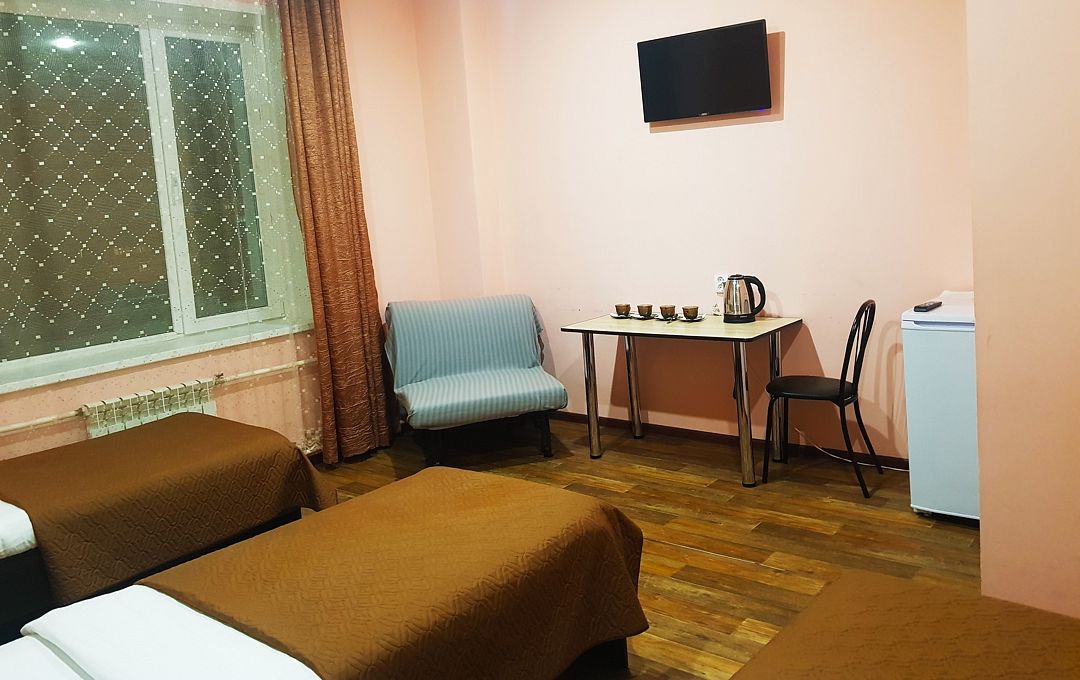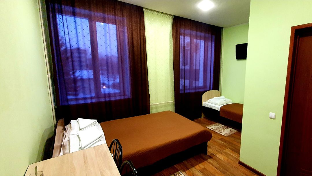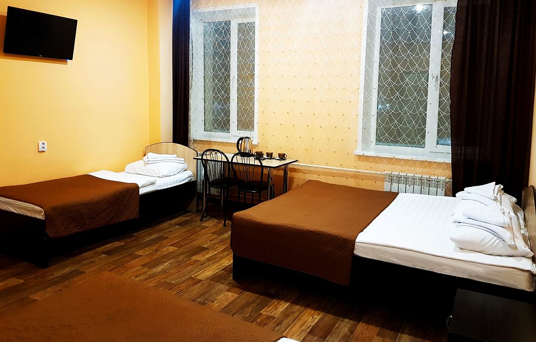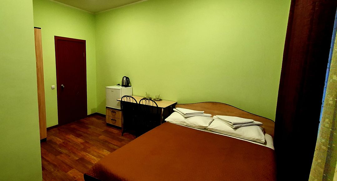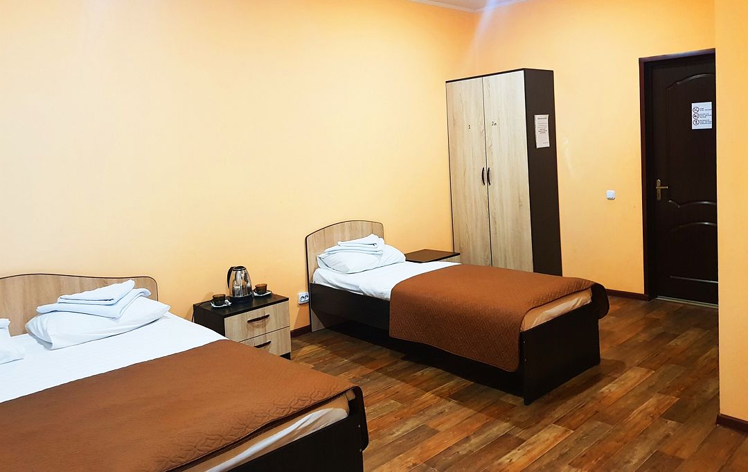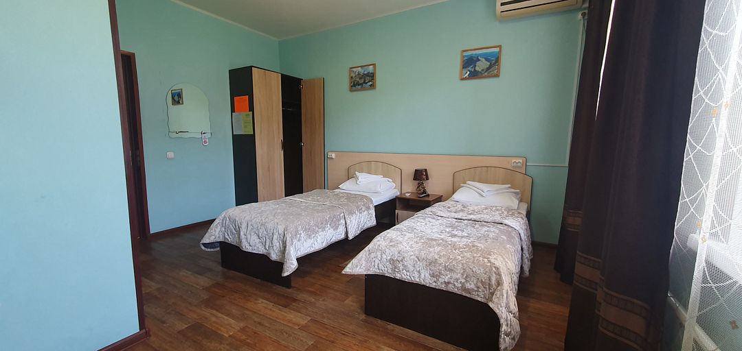 Трехэтажный корпус отеля занимает благоустроенную закрытую территорию. Для размещения гостям предлагается 10 номеров. Номера разных категорий: есть как стандартные комнаты с персональной ванной, так и бюджетные варианты с общим санузлом на этаже. В каждом номере - телевизор-ЖК, холодильник и электрочайник.