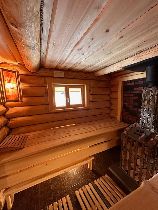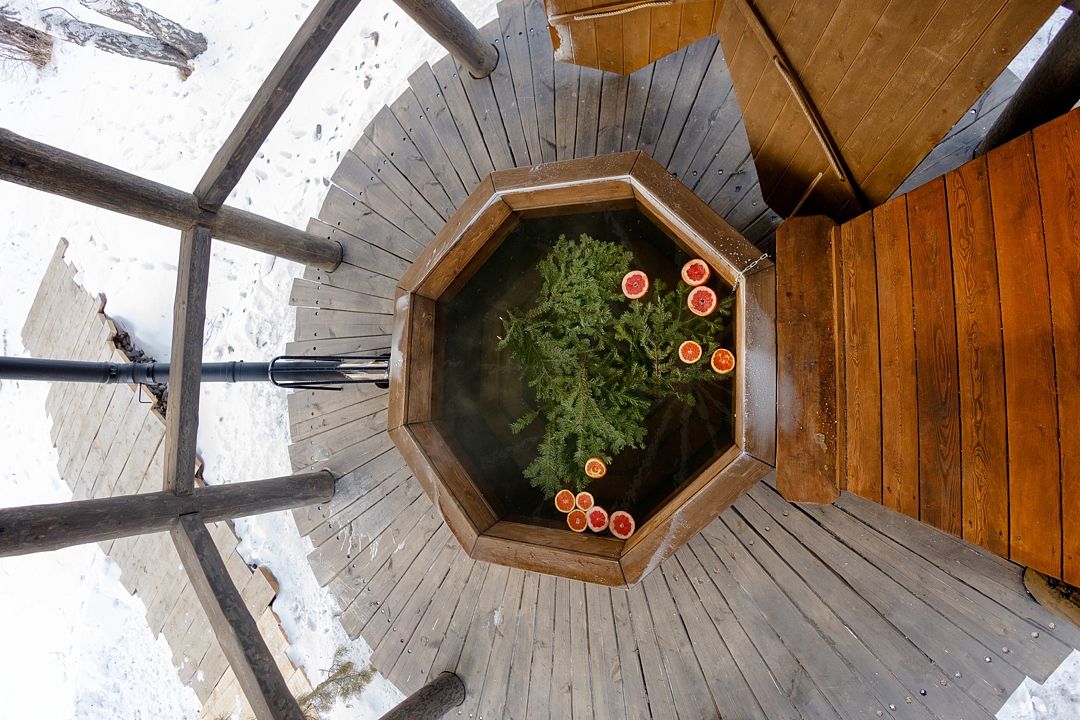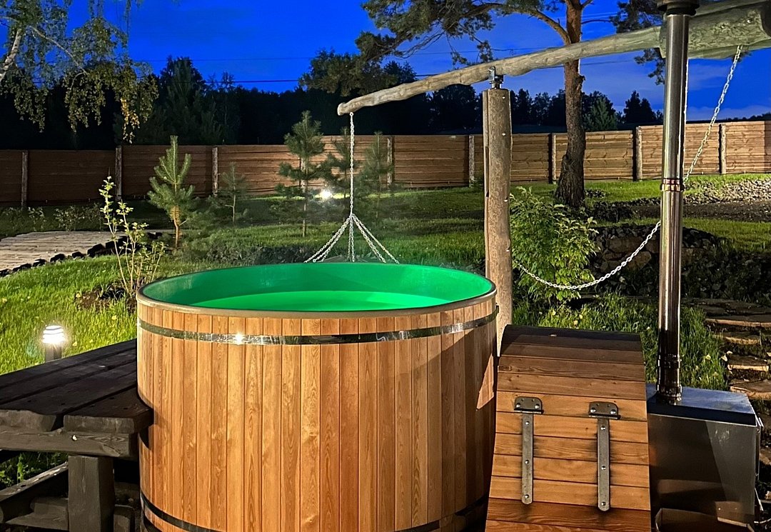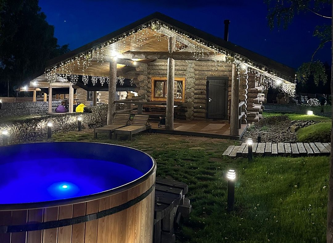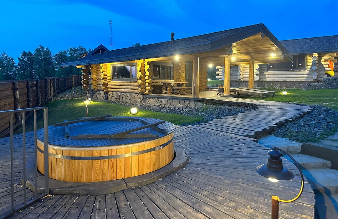 На территории имеется три бани и горячие купели. Банные чаны функционируют круглый год, в них комфортно купаться и зимой, и летом. Также к услугам гостей – пространство для отдыха с гамаками, качелями и костровой зоной.