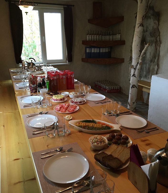 Трехразовое питание, перекусы, приготовленные персоналом базы.