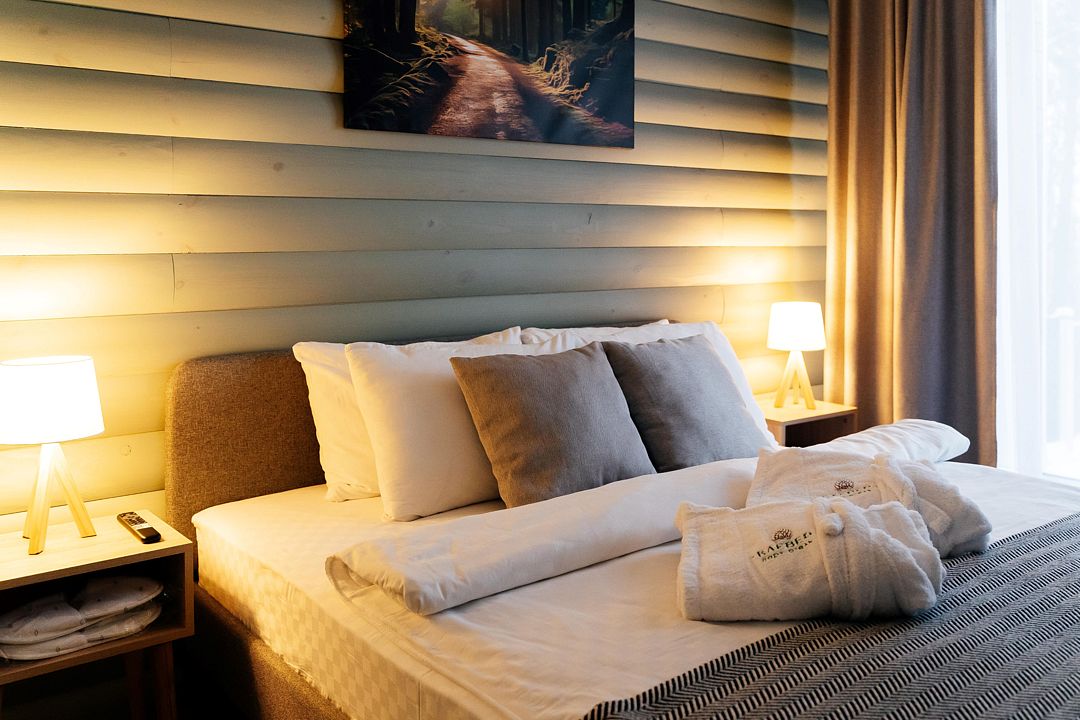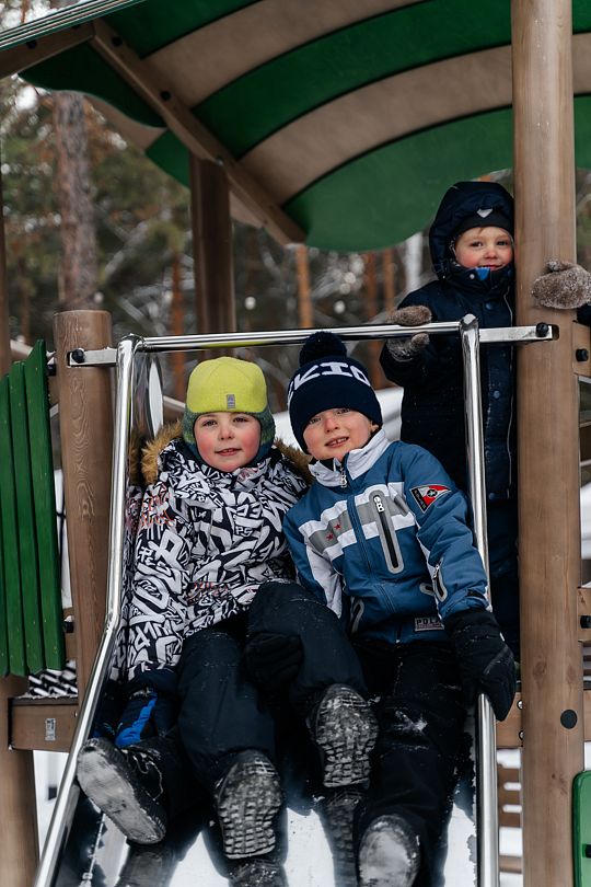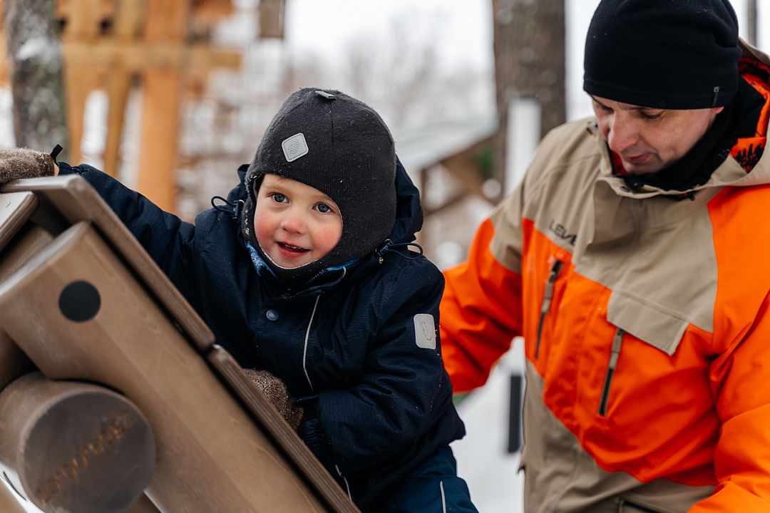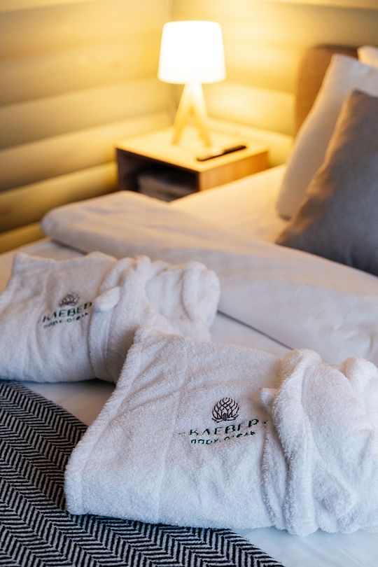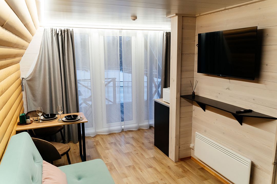 В распоряжении гостей большая территория, вместительная парковка. Вы можете приезжать со своими снегоходами и кататься по лесу. На территории парк-отеля располагается 5 домов «А-frame» для проживания 2-5 человек, 3 двухквартирных домика «Дуплекс», один из которых рассчитан на 2-4 человек. Оборудованы несколько детских площадок для любого возраста, для отдыха на свежем воздухе имеются тёплые и летние беседки и бесплатная мангальная зона.