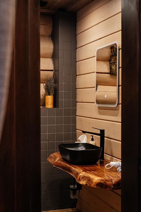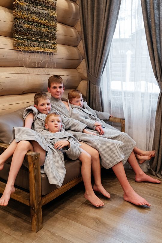 Инфраструктура: тапочки, купель, полотенцаВместимость до 6 человек. Парная с уникальной инновационной печью прямого нагрева. Горячая и холодная купель.