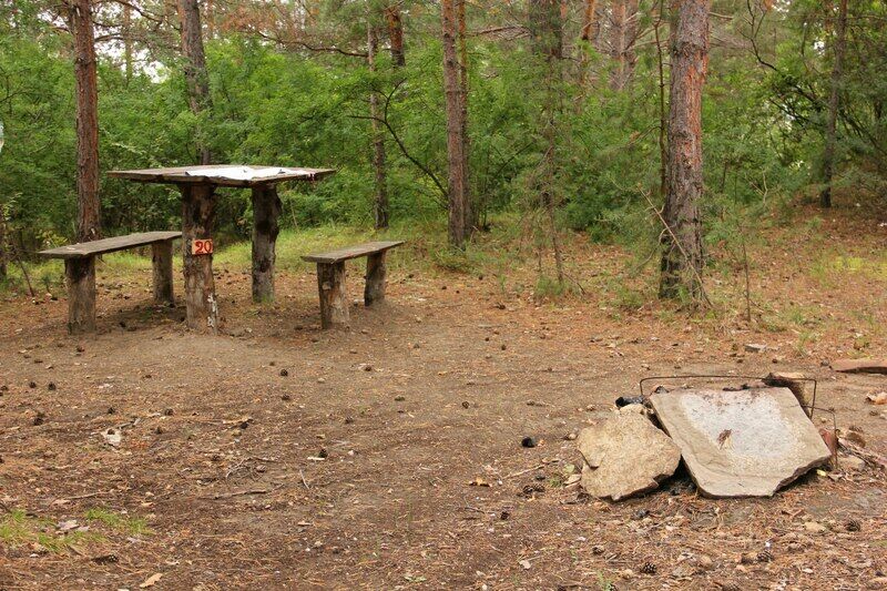 Палаточные места оборудованы столом, лавками, кострищем, туалетами, бочками для мусора.