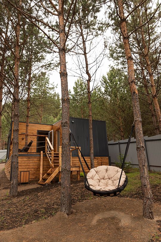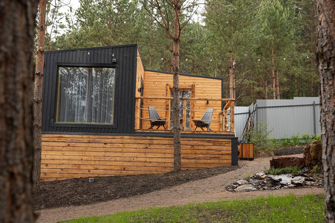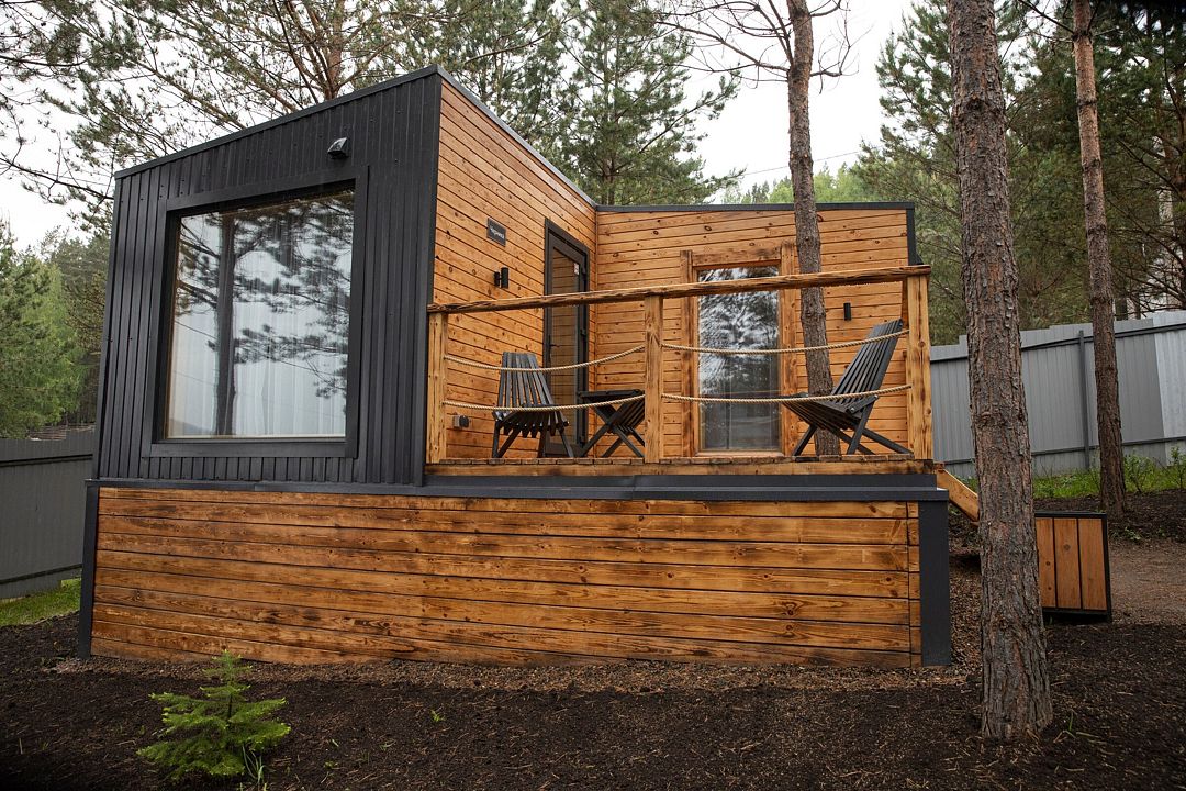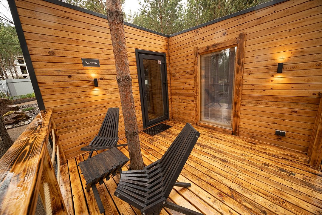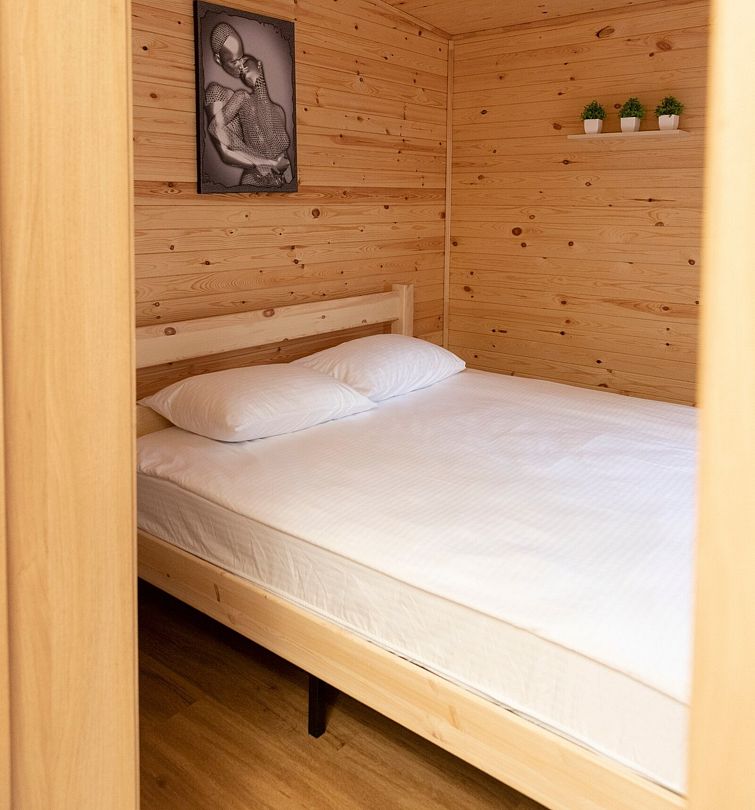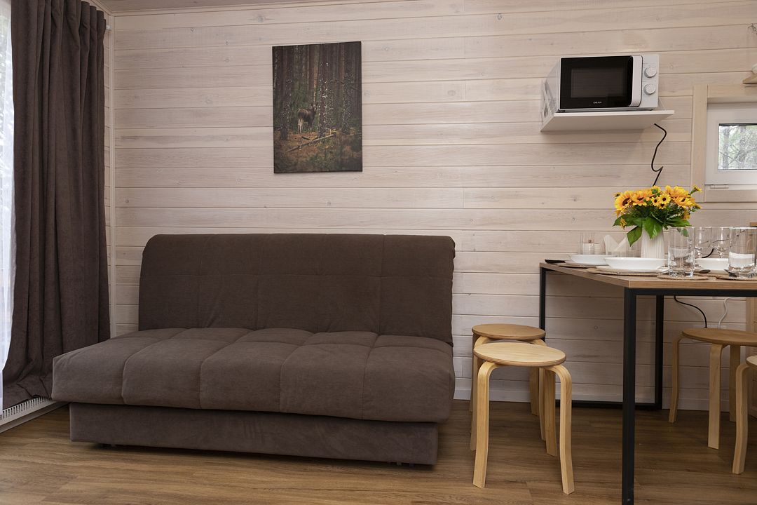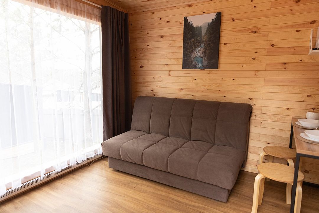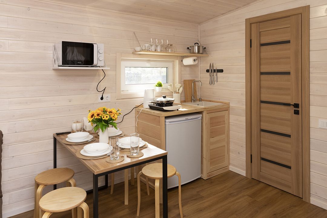 В распоряжении гостей домики для 2–4 человек с базовыми удобствами: санузел, кухня, двуспальная кровать. Идеальны для короткого отдыха в уютной атмосфере. Для удобства работает интернет Wi-Fi.