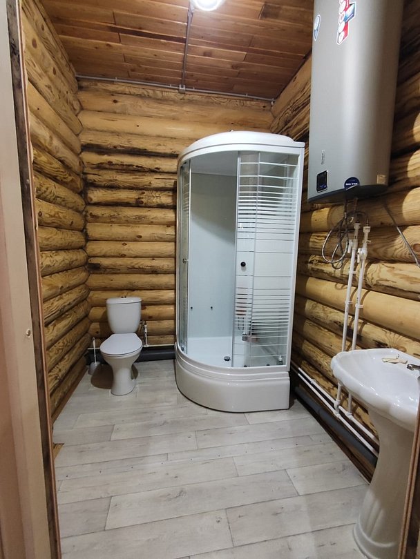 В большом доме расположено два комфортных санузла, оснащённых душевыми кабинами, унитазами, водонагревателями. Использование для проживающих бесплатно.