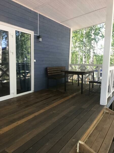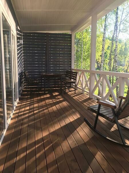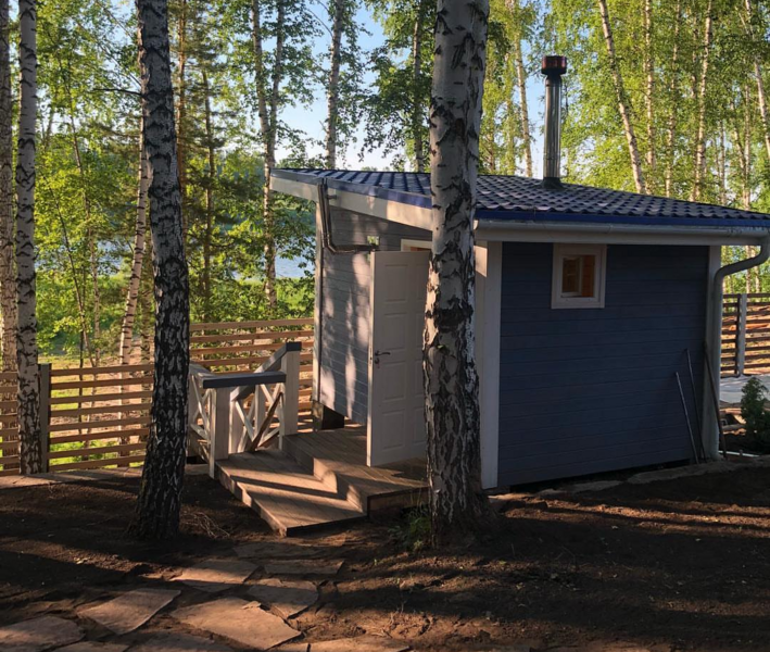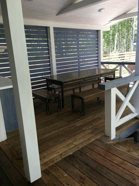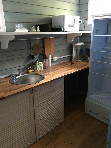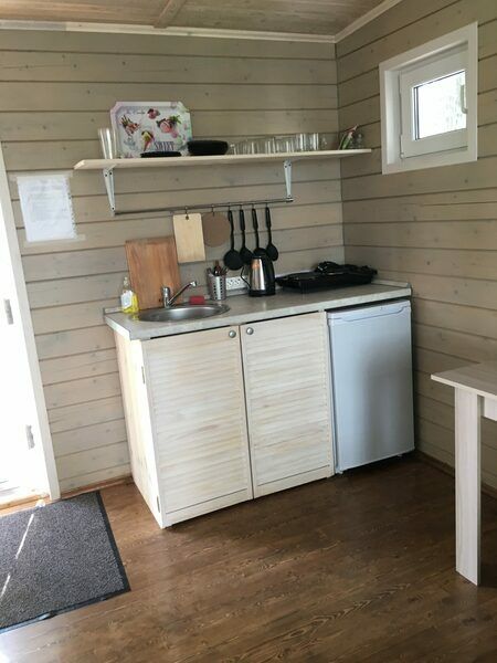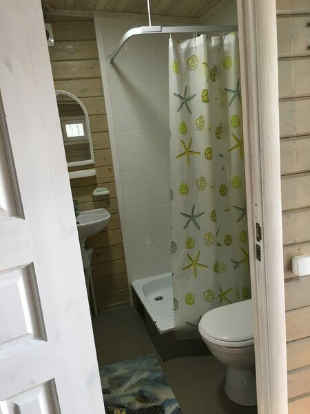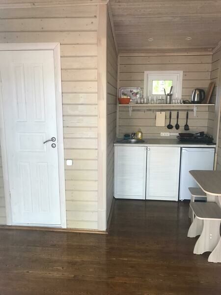 В домике два санузла, кухня, холодильник, печь, посуда, микроволновая печь. Домик идеально подходит для большой компании.