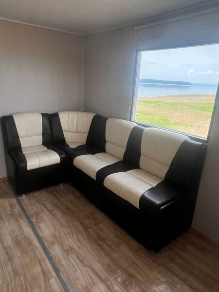 Дом №8, кухня с диваном, комната с двуспальной кроватью. Туалет с раковиной