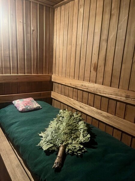 Банный веник приобретается дополнительно: березовый - 250 ₽, дубовый - 450 ₽.